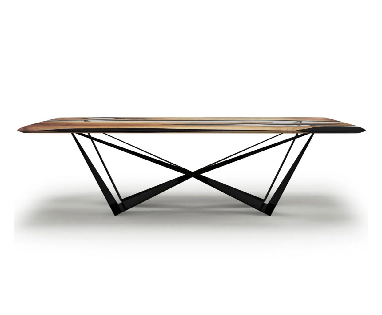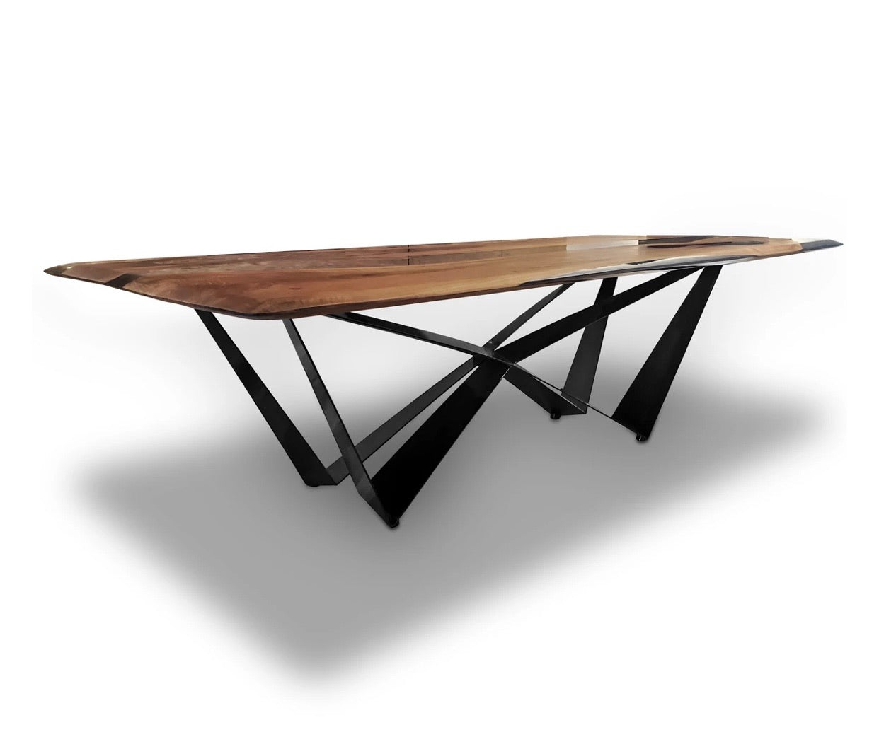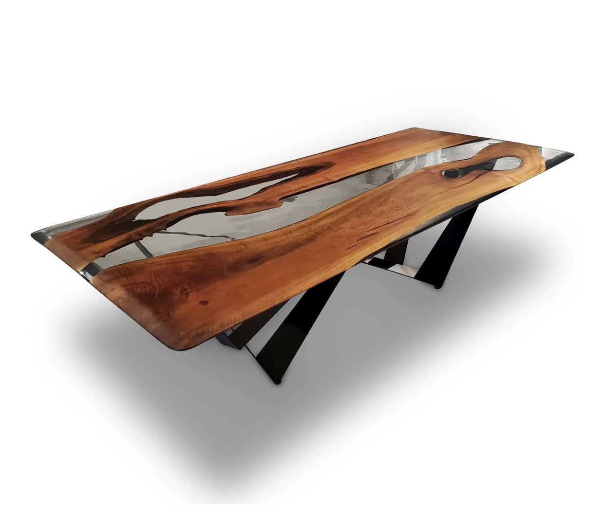 Smoked Epoxy Resin Live Edge Metal Mesh Dining Table