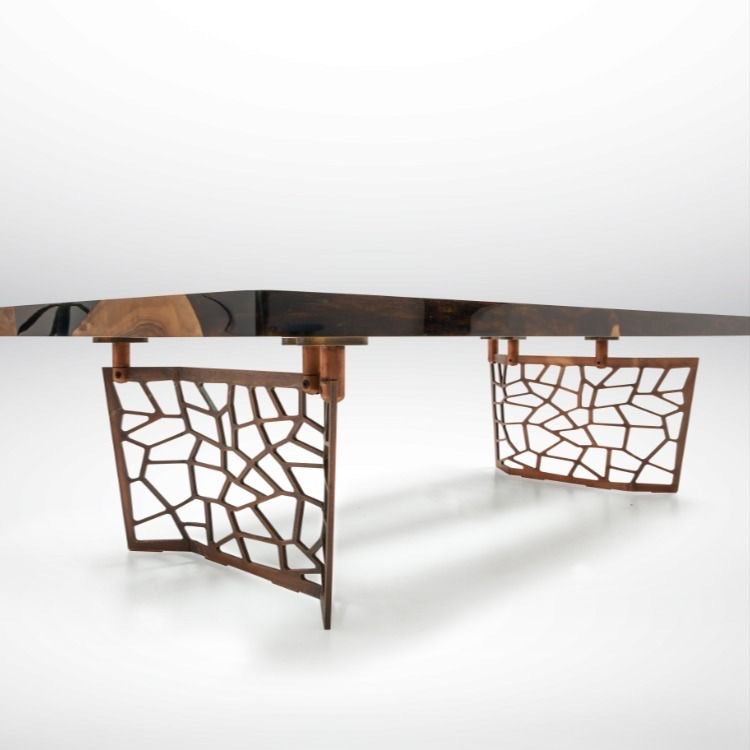 Voronoi Round Live Edge Metal Mesh Dining Table