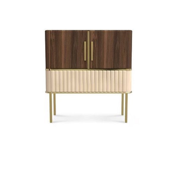 Inspired by one of the most refined names in the Hollywood industry, Essential Home created Hepburn Cabinet. With a body handmade in “Rosewood” and two-door handles made of Brass, this mid-century modern cabinet stands out thanks to its leather upholstered applique at the bottom. The mid-century bar cabinet stands on four slender and handmade polished brass legs. Hepburn can be used as a drinks cabinet, sitting well in a modern home bar, or a private country club salon. For an even more unique approach, Hepburn’s many features can be customized to your liking.