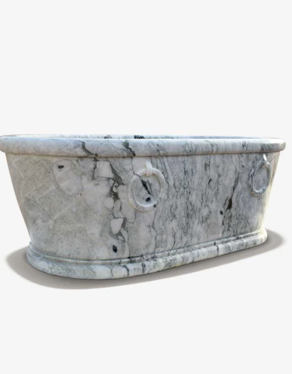 Indulge in the grandeur of classical luxury with the Imperium Calacatta Freestanding Marble Bathtub, a regal masterpiece crafted from exquisite Calacatta marble with striking gray and gold veining. Inspired by vintage European design, this bathtub is a symbol of opulence, bringing an air of aristocratic refinement to any bath space.