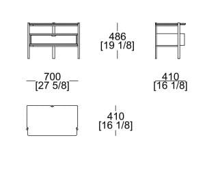 The Eros night group, consisting of a chest of drawers and bedside table, is characterized by the sophisticated dialogue between the different materials that compose it: metal, marble, wood.‎ The bronze painted metal oval diameter structure supports a precious marble support surface through a sophisticated recess inside which it is inserted.‎
