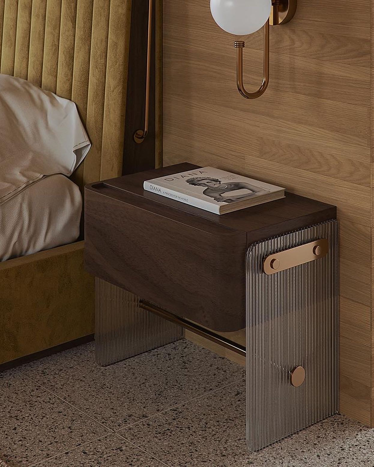Embodying a visible retro look exposed by the use of acrylic, which composes the main structure of the piece, Hodge has a differentiated design, creating the illusion of a nightstand floating in the air. This piece is a unique element to add to a mid-century modern bedroom.