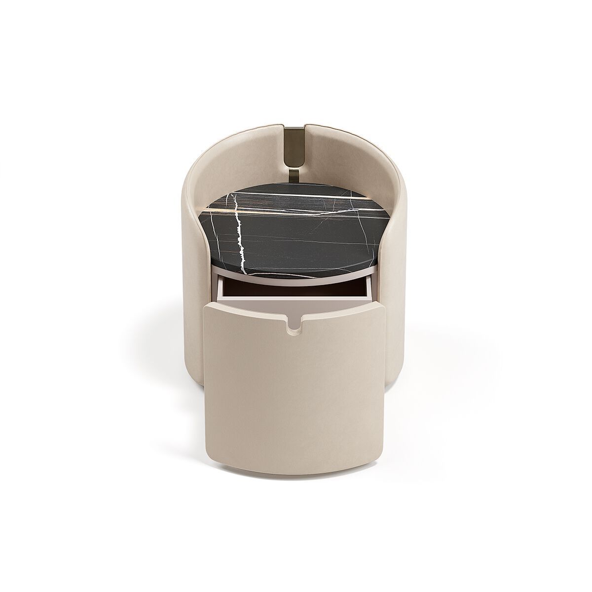 Adorned with luxurious leather, Suite bedside table exudes sophistication and refinement, adding a touch of opulence to any bedroom setting. Its smooth and supple texture invites a tactile experience, while the intricate craftsmanship creates a sense of artistry and prestige. Equipped with two drawers, this bedside table offers practical storage solutions without compromising on style.