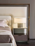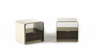 Bedside table with 1 drawer, upholstered in leather, with bronze details.21.65 x 17.72 x 21.26 inchesLead time:6-8 weeks