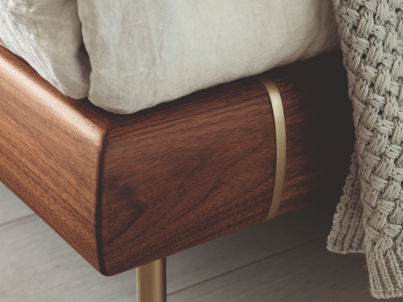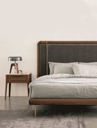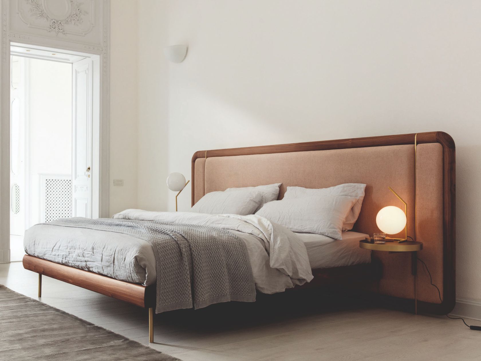 The Killian bed by Porada is recognizable for its elegant, contemporary and versatile design thanks to the various customizations of the headboard. The structure is available in canaletto walnut. The upholstery is available in various categories of fabric and leather.