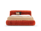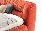 The MAMBO bed is a padded double bed defined by sinuous, flowing shapes. Inspired by the collection’s sofa, it celebrates movement, fluidity, and the rhythm of the famous Caribbean dance. Its design elegantly defines the space, evoking the graceful, lively motion of mambo dancers while inviting ultimate relaxation. Rich velvet hues recall the vibrancy of tropical landscapes, and generous pleats mirror the flowing costumes of Creole dancers, combining comfort with expressive style.
