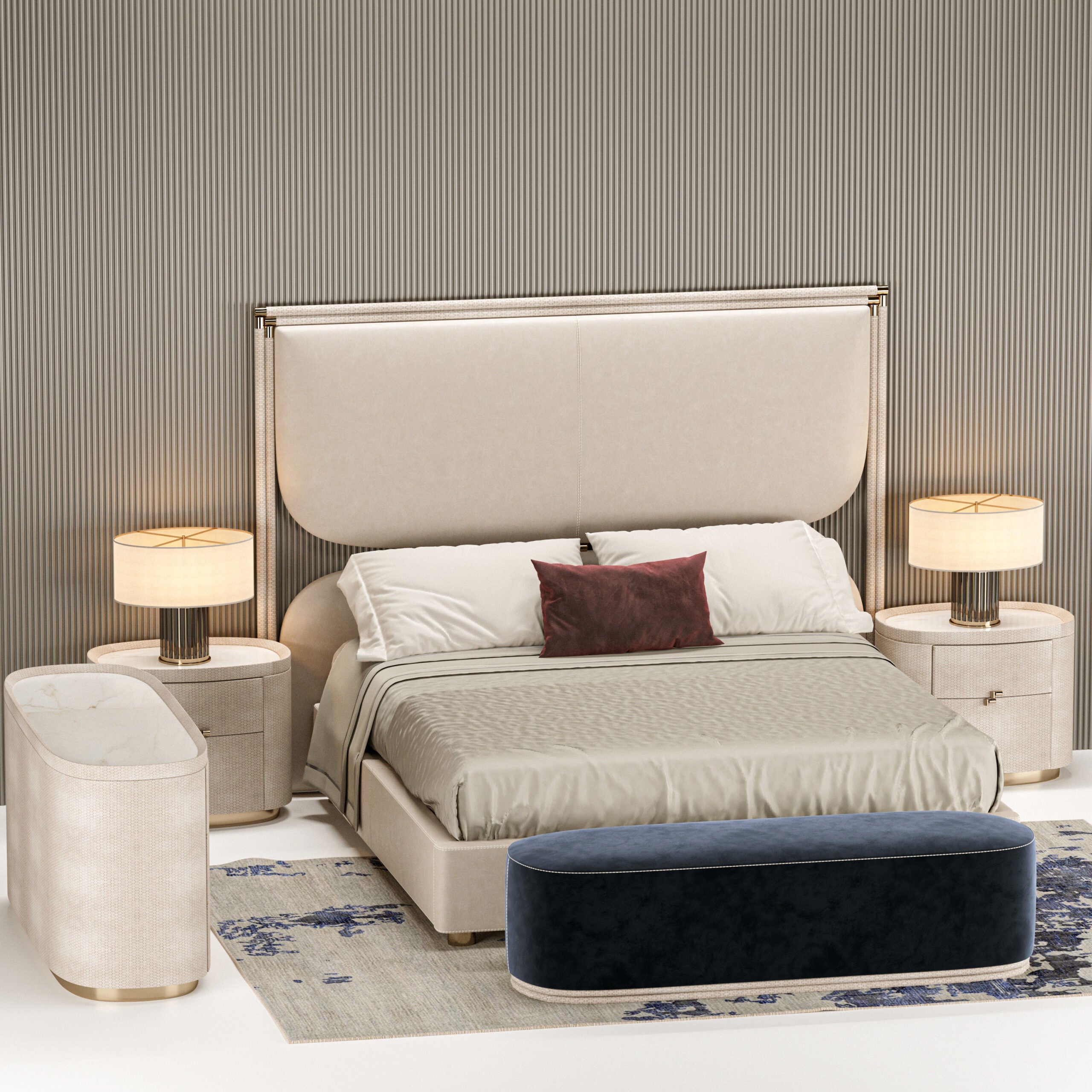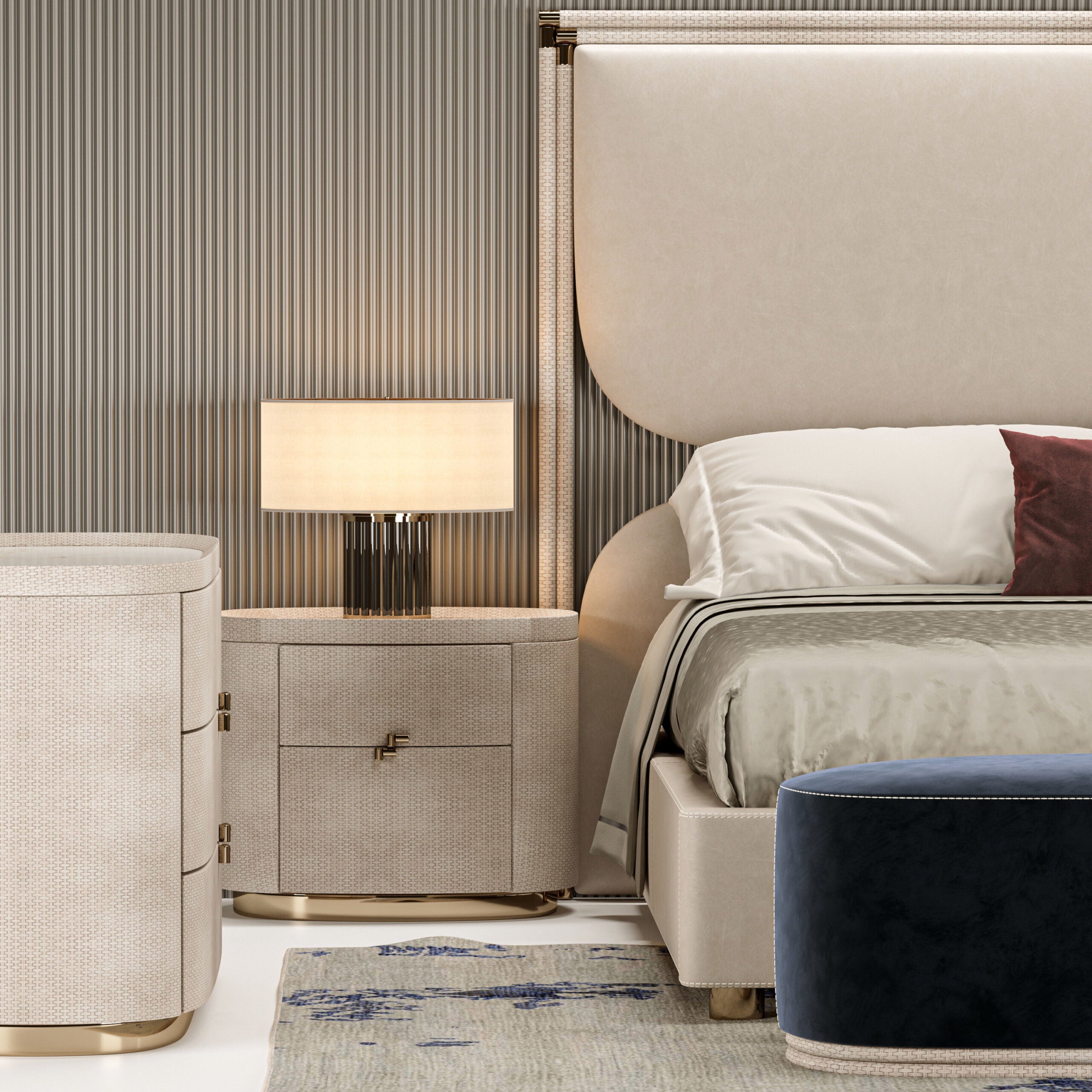 The Boheme range includes bed, bedside tables, chest of drawers, end of the bed bench, mirror and sofa.