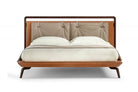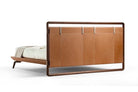 footboard and bed frame boards made in plum wood , entirely upholstered in Faux leather, as is the beech and birch plywood headboard.