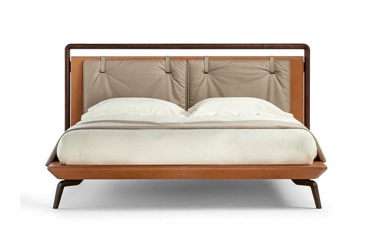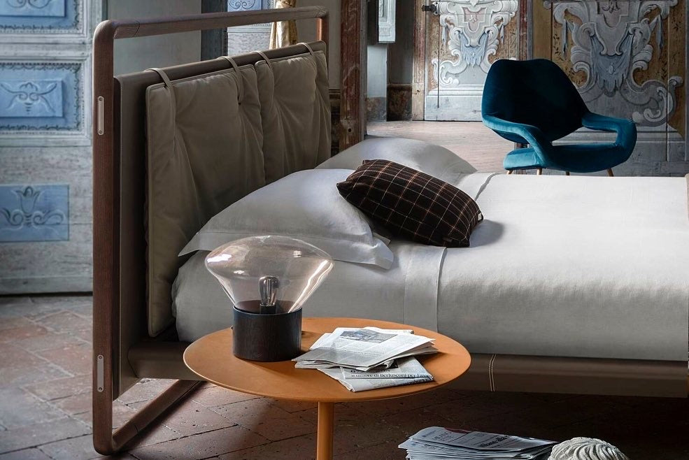 The Volare bed is a large structured bed, luxurious in terms of its workmanship and natural materials, yet at the same time discrete and sparing. It is a warm and welcoming bed, an oasis of comfort and relaxation.