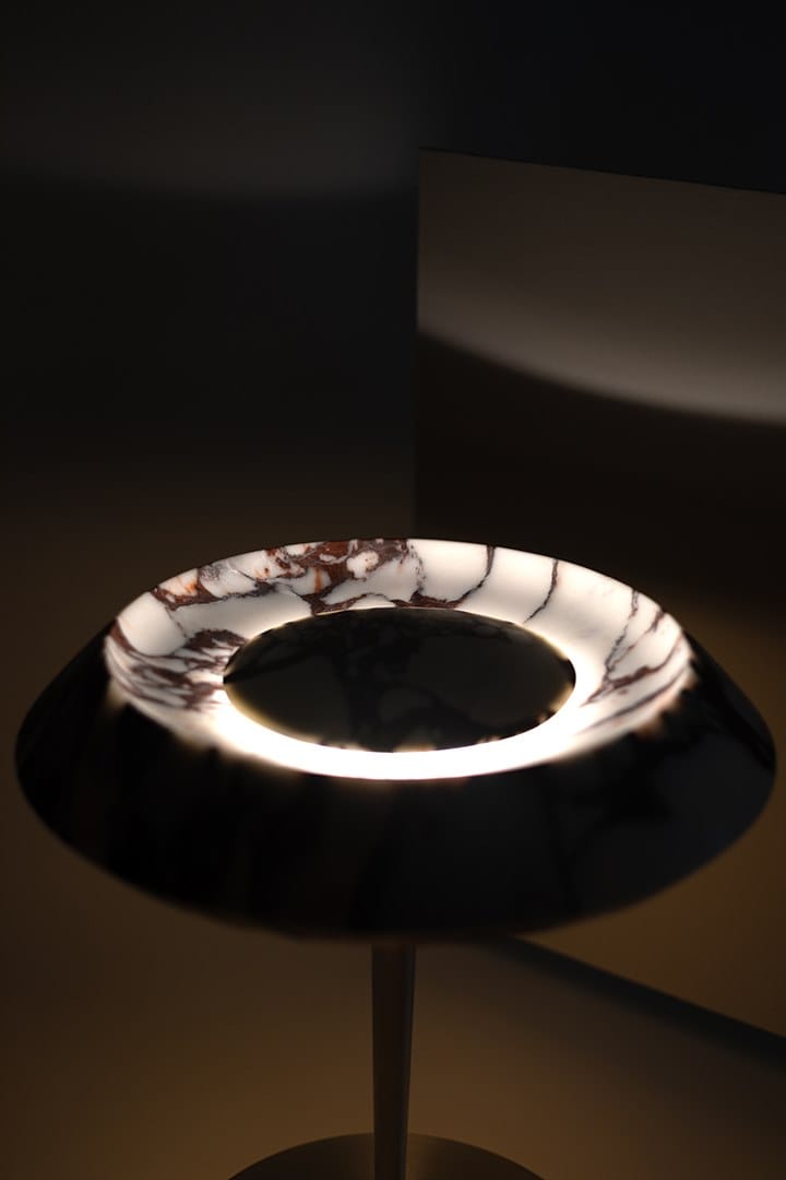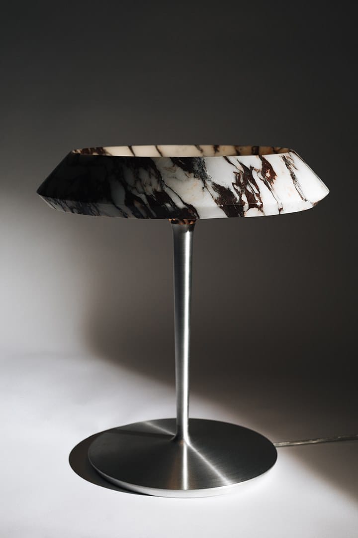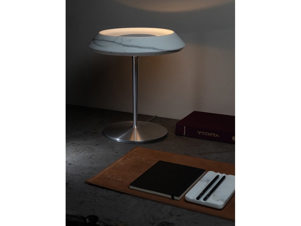 Fiore Calacatta Viola is a table lamp made of marble and metal.