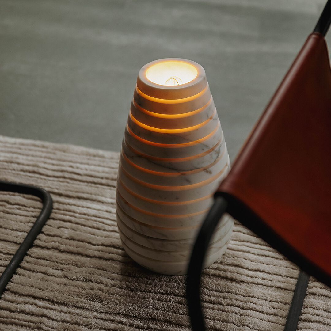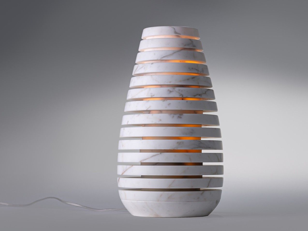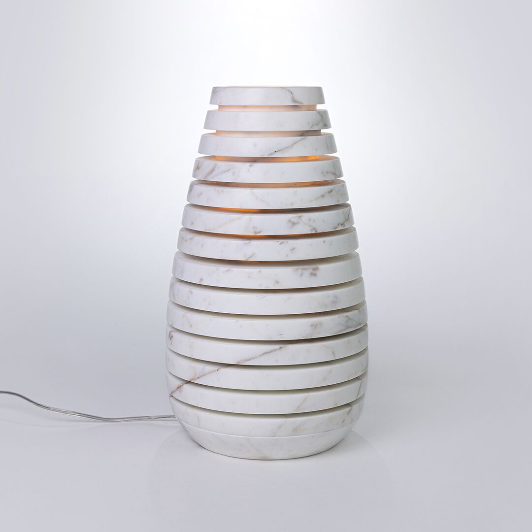 Silhouette Calacatta Oro is a floor and table lamp ideal for both indoor and outdoor environments made of marble. With an aesthetic similiar to the stone, Silhouette is a lamp that has an outlined and alluring shape.