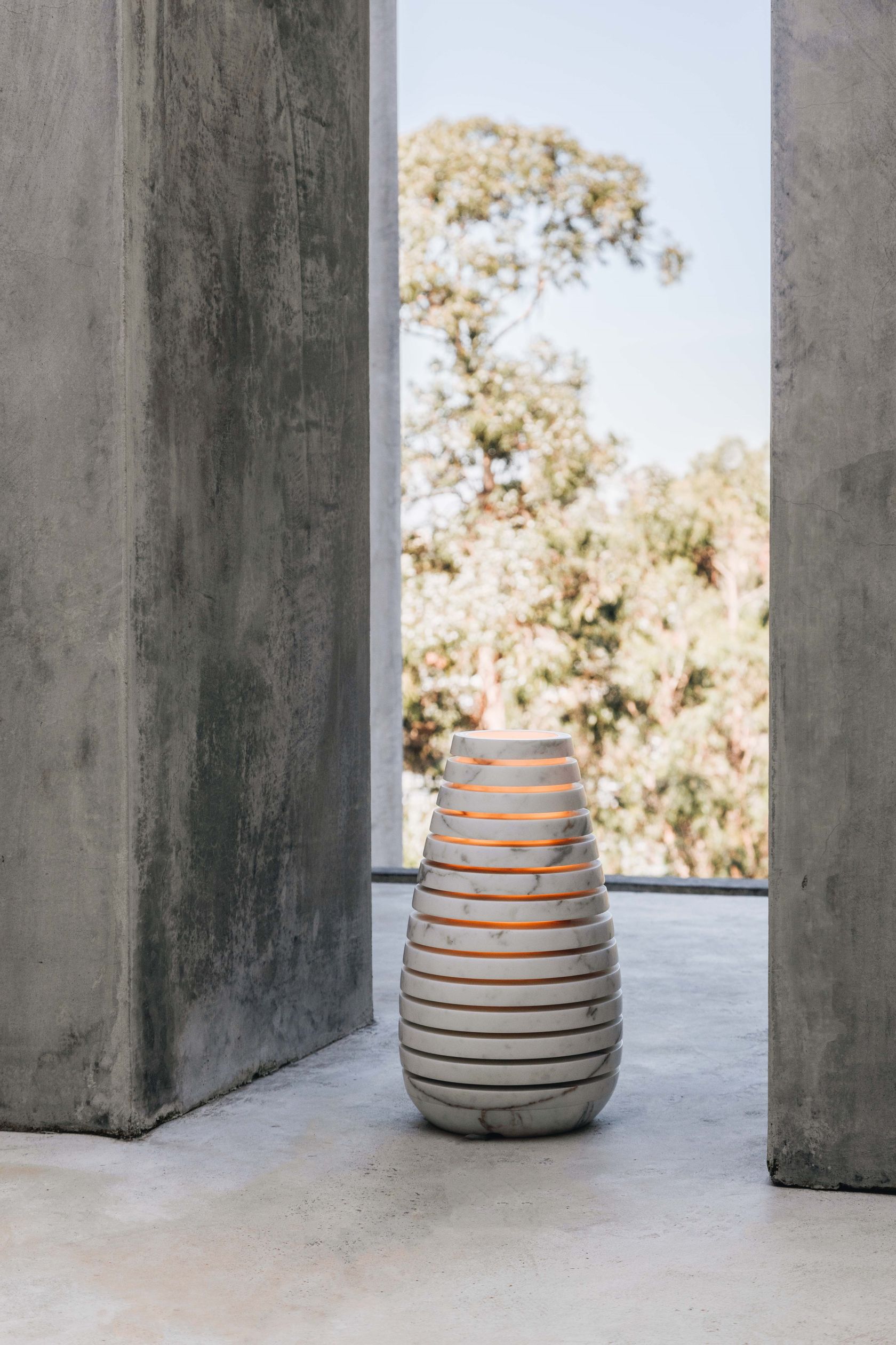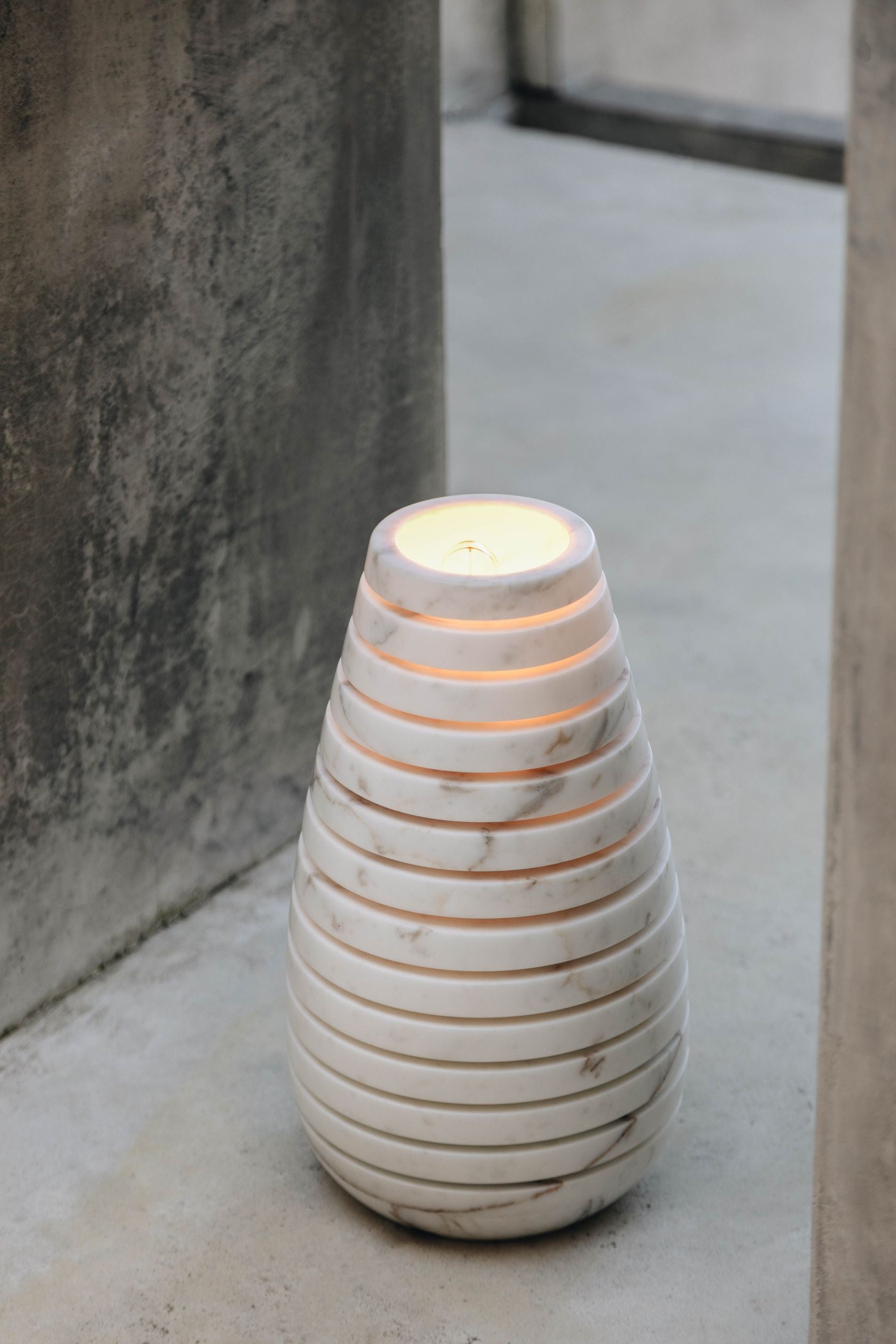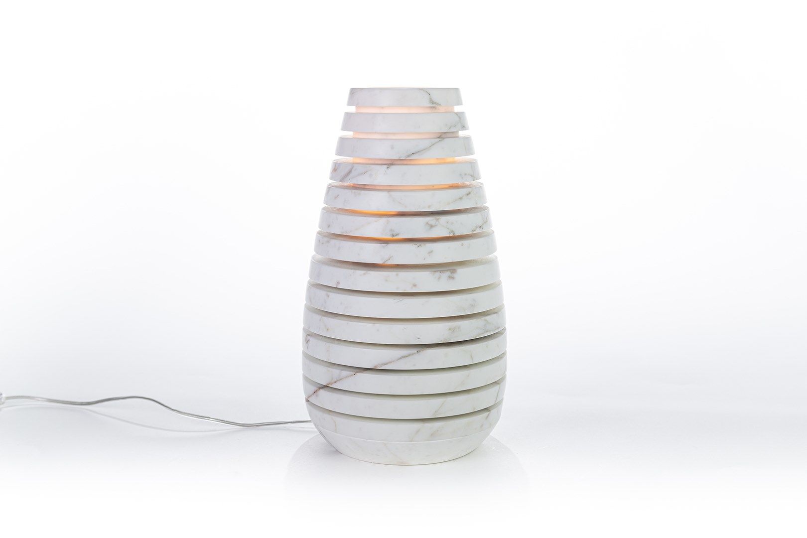 Silhouette Calacatta Oro is a floor and table lamp ideal for both indoor and outdoor environments made of marble. With an aesthetic similiar to the stone, Silhouette is a lamp that has an outlined and alluring shape.