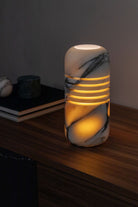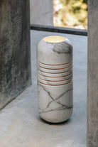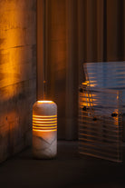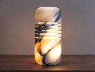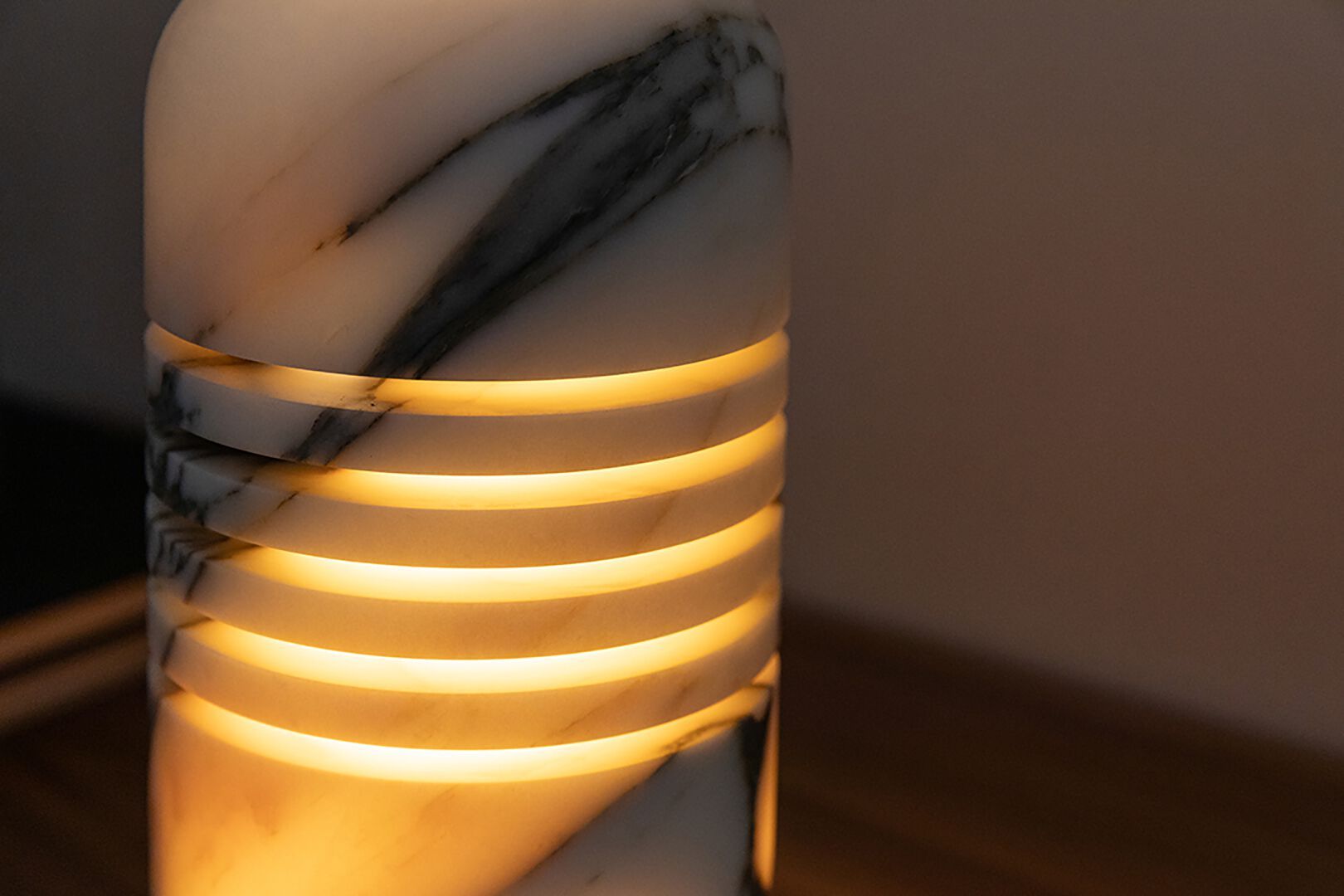 LUMI CALACATTA ORO is a marble floor lamp ideal for both indoor and outdoor environments. With incredible aesthetic appeal, LUMI CALACATTA ORO is carved from a single piece of marble, with the linear ridges chosen to allow light to shine through from the inside of the lamp.