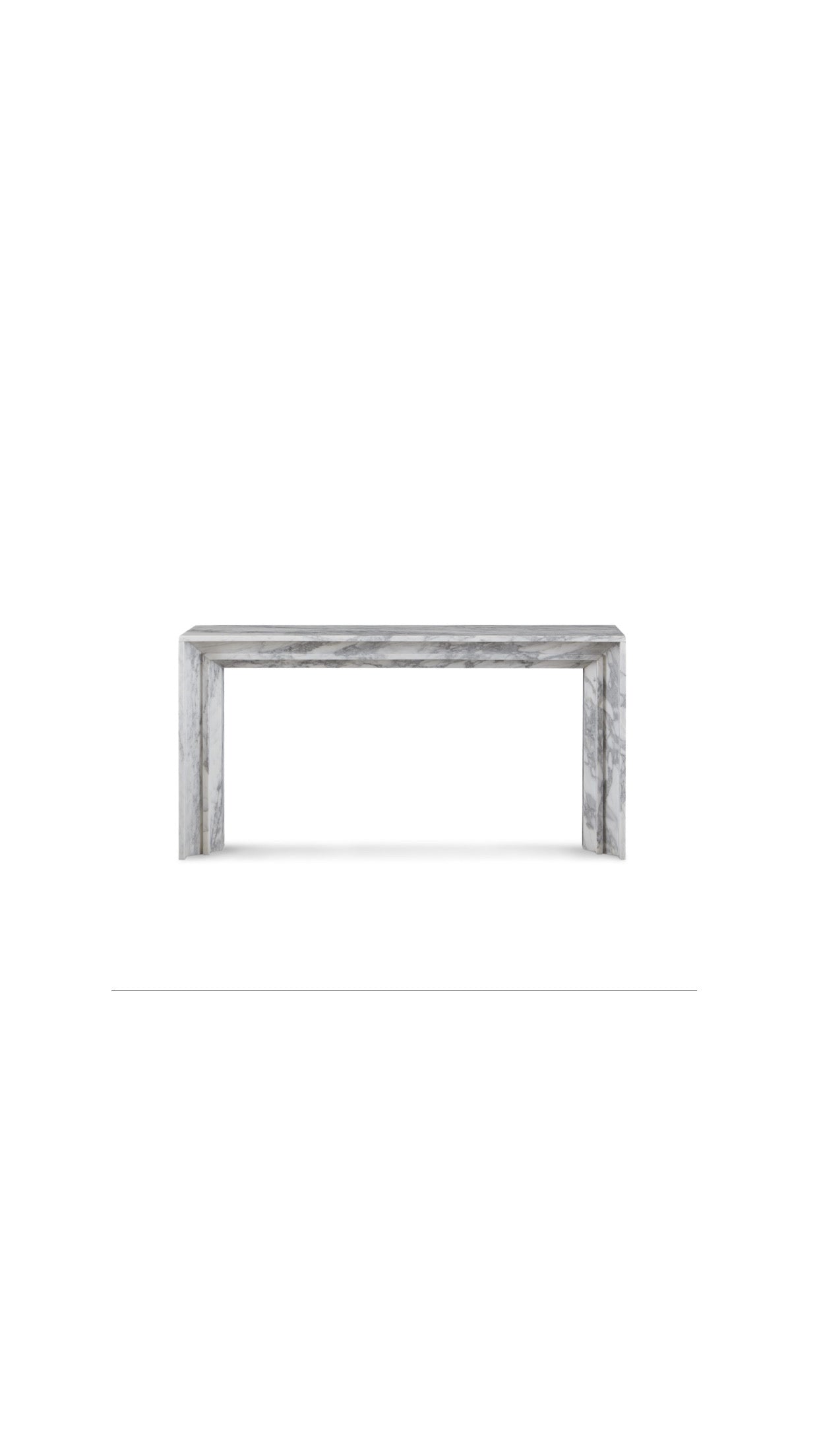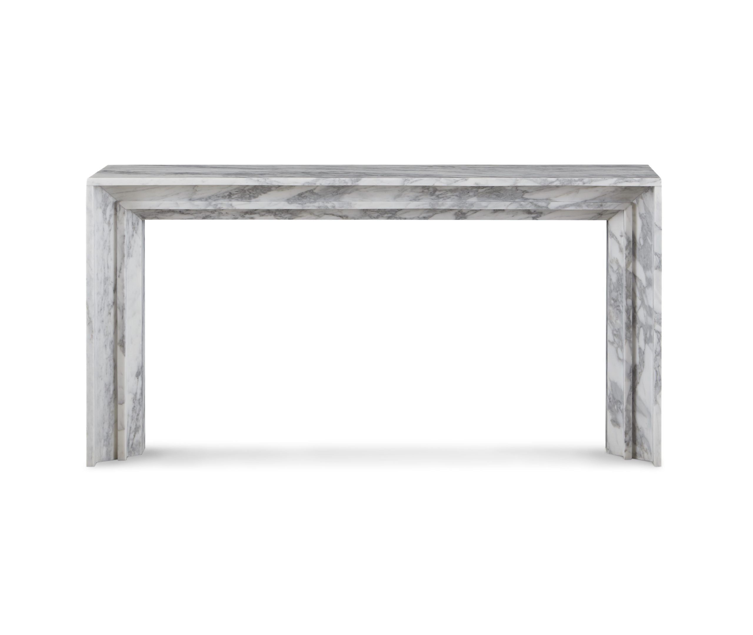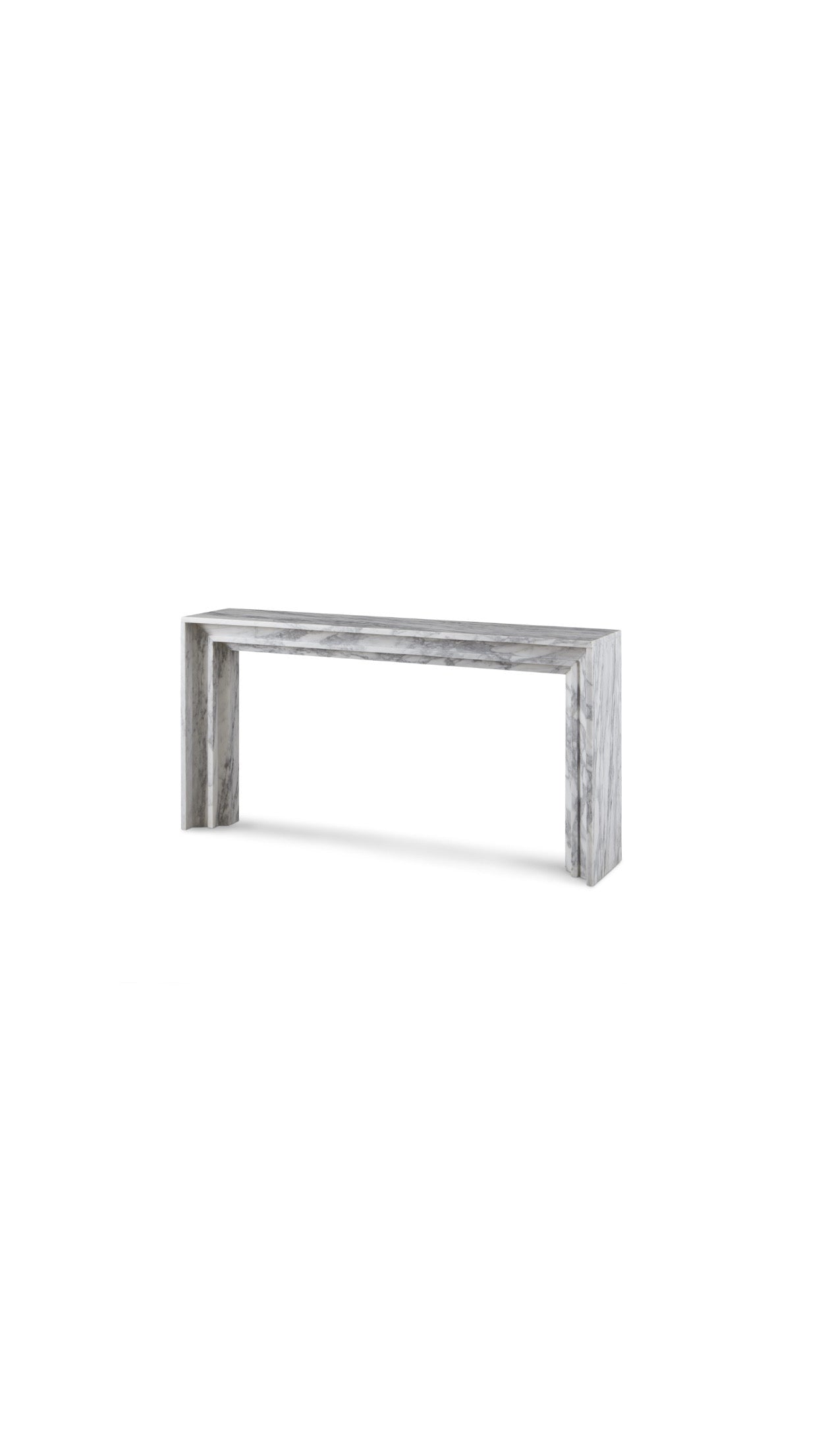 The Angelo Console is attention-getting from every angle, with modern bolection styling carved from white Arabescato marble.