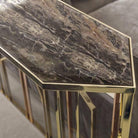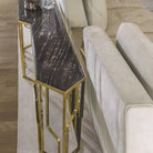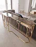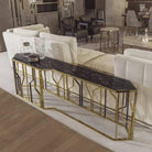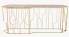 Dimensions: 60”L x 18”D x 38”HAn elegant console table, which plays with lines and geometry in the most fun way possible. Despite the slim design, it has plenty of space for you to showcase your aesthetic expression.
