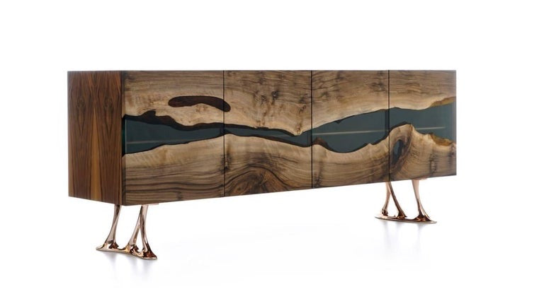 OSSO Brass Epoxy Resin Live Edge Credenza