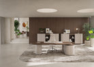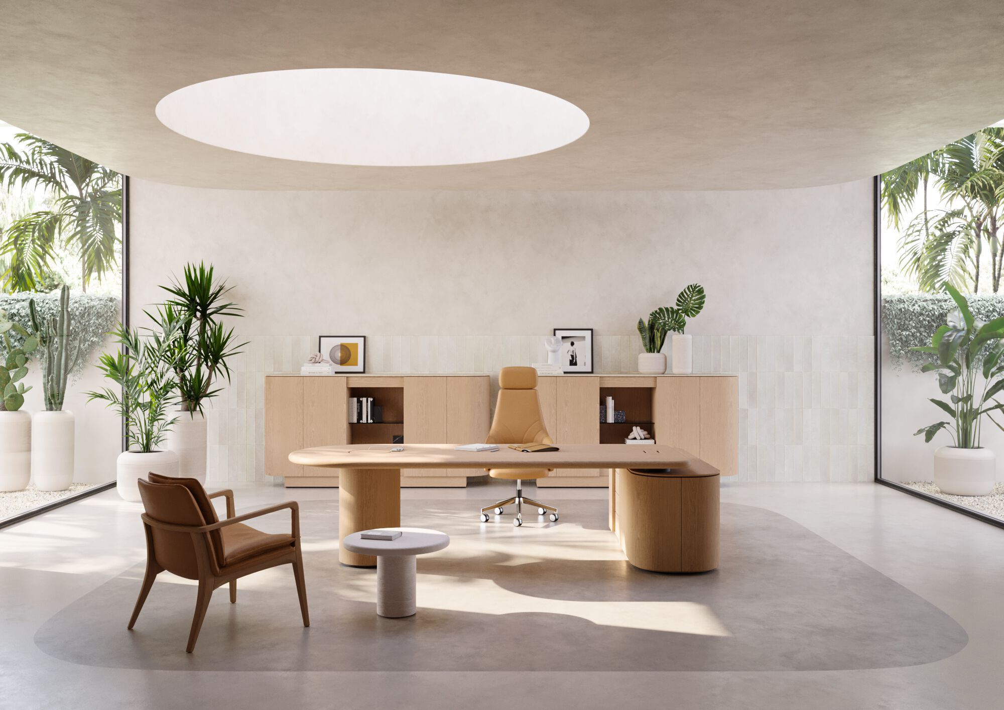 In different sizes and versions it is composed of a desk, meeting tables, sideboards, consoles and a series of coffee tables, offering a complete solution for elegant executive spaces.