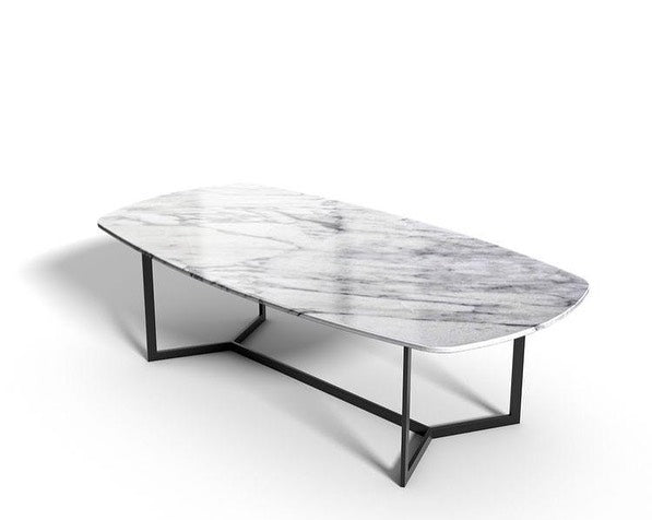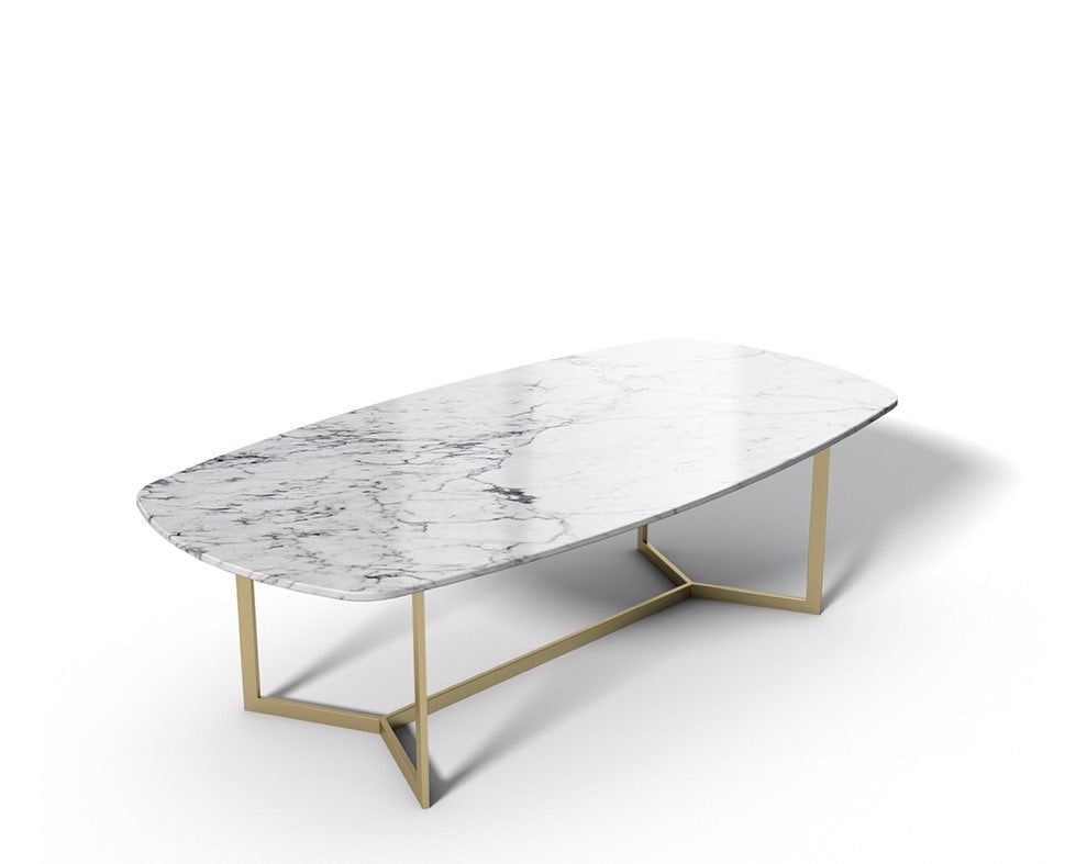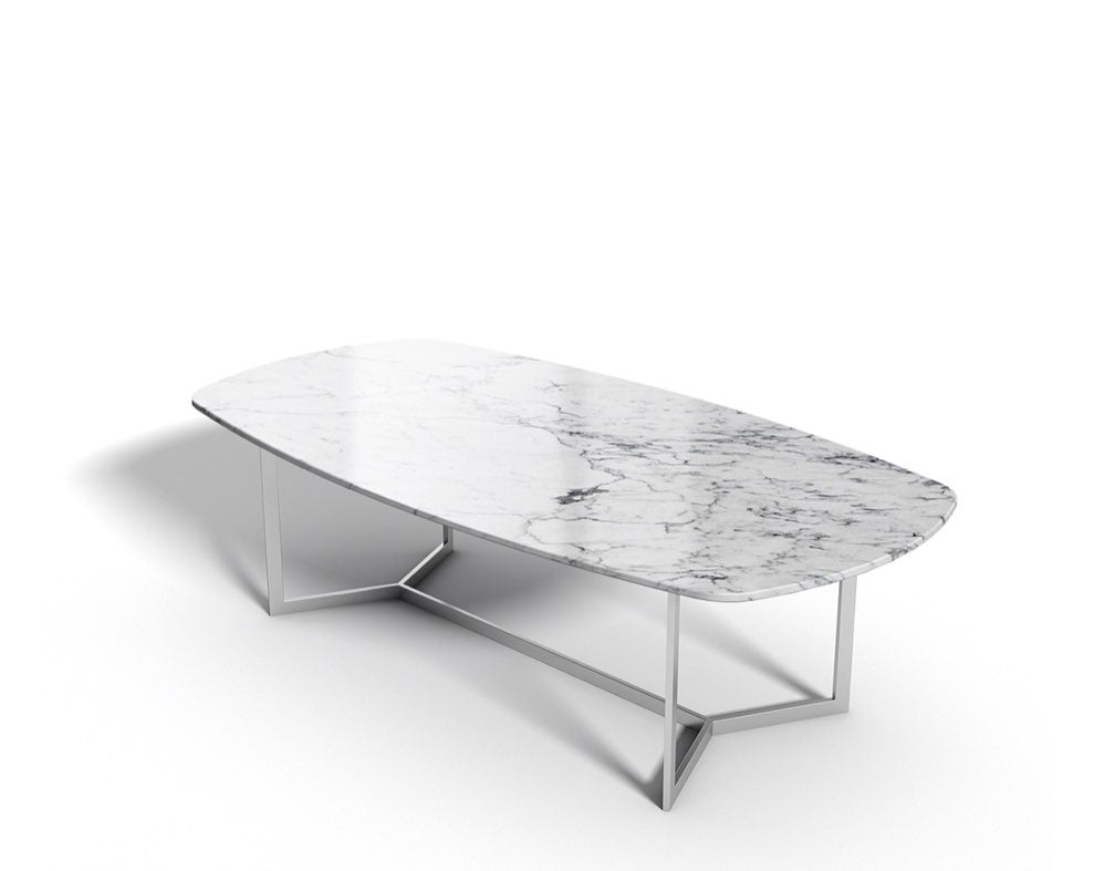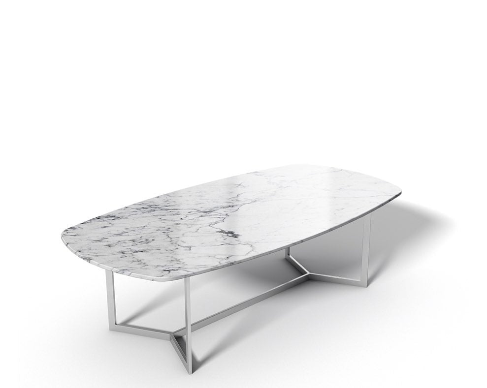 A design able to propose a primary shape, emphasizing the naturalness of the steel metal for Concorde table by Emmanuel Gallina. Soft shapes interpretated with essential style.