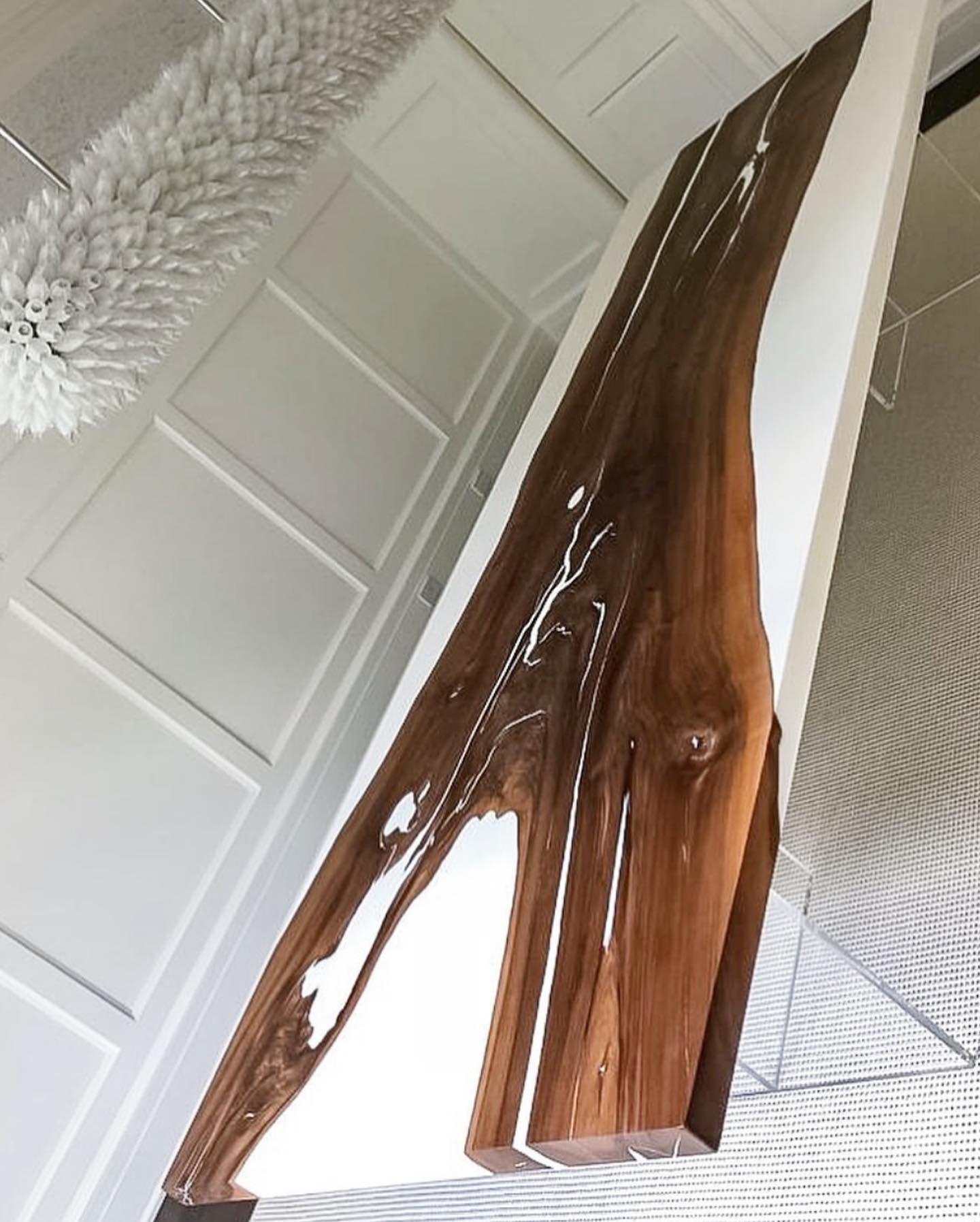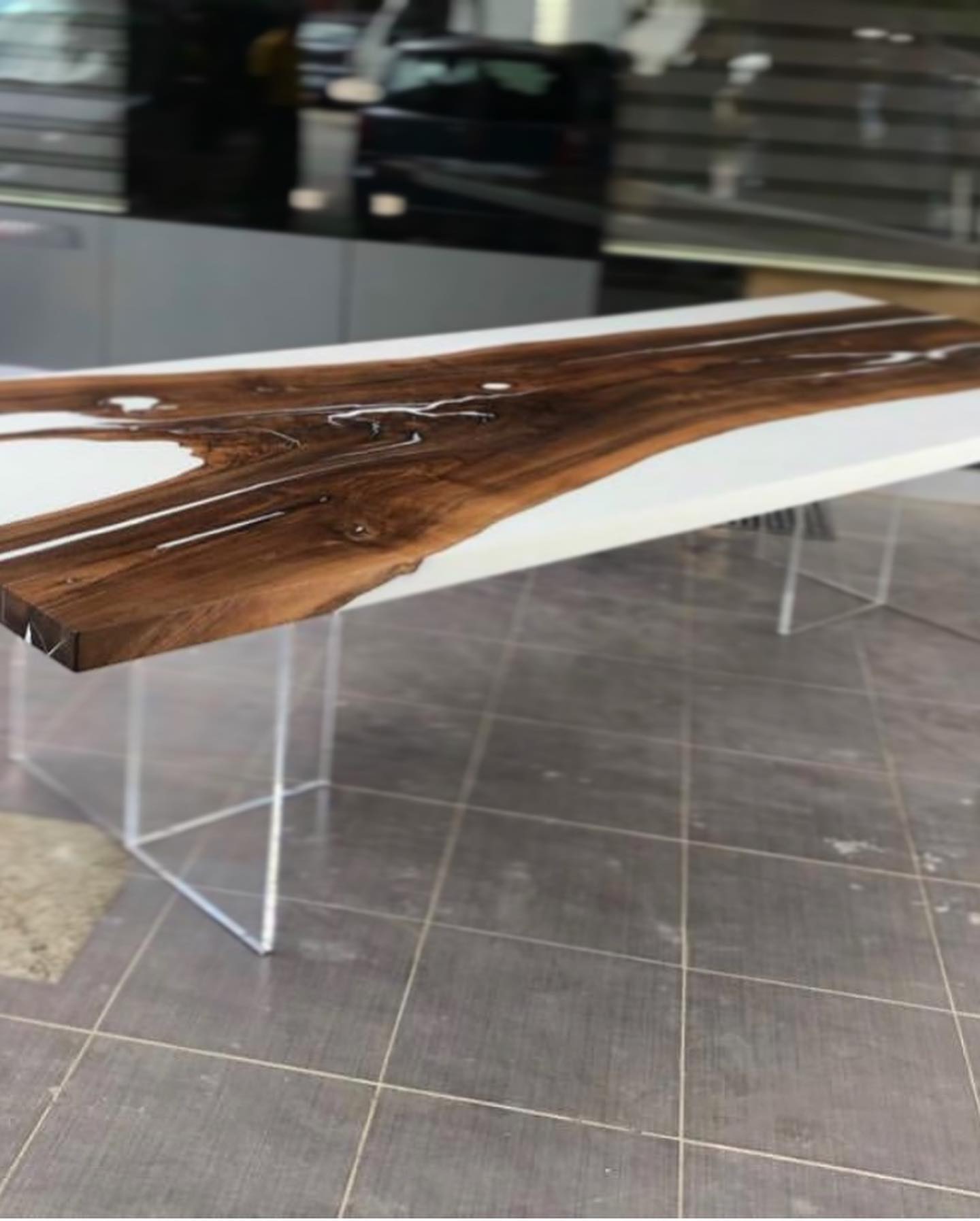Ivory Epoxy Resin Live Edge Plexiglass Dining Table