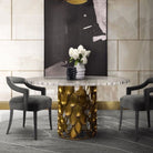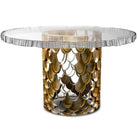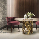 KOI carp is a recurring symbol of Japanese culture, highly appreciated by its decorative purposes, not only in water gardens but also in Irezumi practice or, most commonly, in tattoos. Its natural colour mutations reveal their capacity to adapt, just like the set of KOI tables with table tops in resin, glass or marble that you can choose to better fit in your ambiences. The KOI scales from the sides of the tables shine and reflect - on its brass surface - the sun caught throughout the clear water. KOI and the Japanese word for love or affection are homophones, making the carp also a symbol of love and friendship
