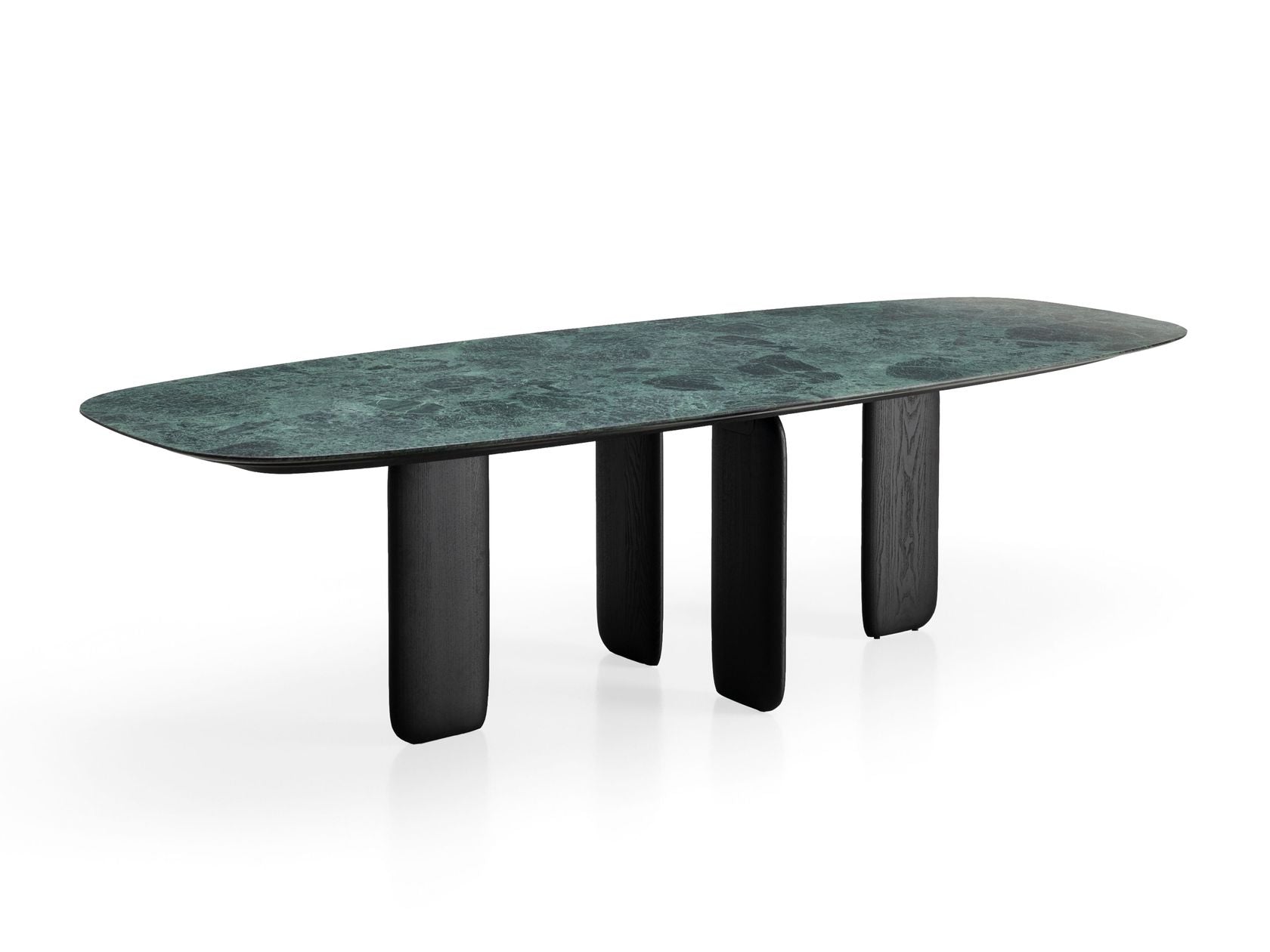 The version shown in the photo features legs with a black-stained ash finish and a top with Green Alps marble finish.‎