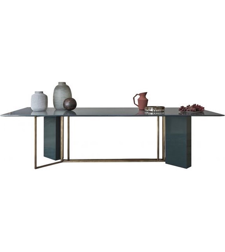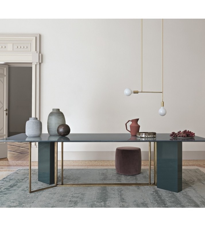 Light structured metal bases in a black or bronzed brass finish match solid volumes covered in various kinds of marble, wood or lacquered finishes and are freely combined with differently shaped tops giving life to an interplay of solids and voids.