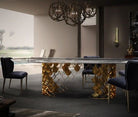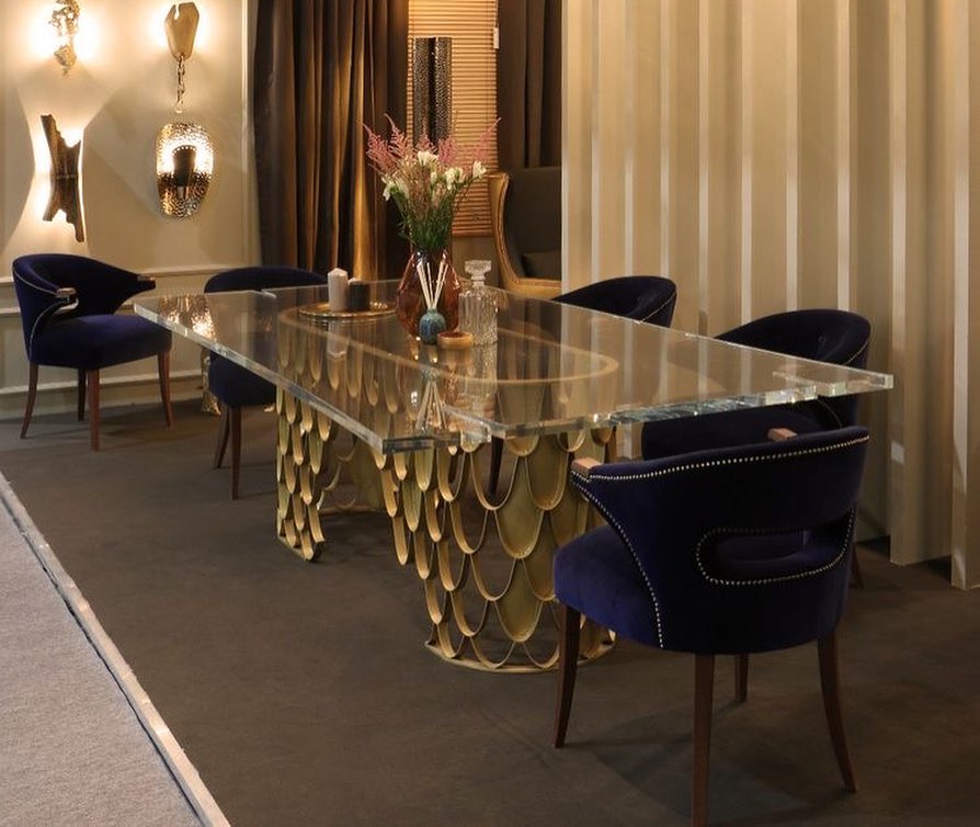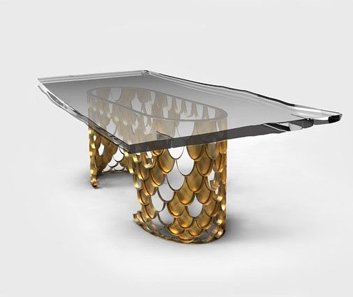 KOI carp is a recurring symbol of Japanese culture, highly appreciated by its decorative purposes, not only in water gardens but also in Irezumi practice or, most commonly, in tattoos. Its natural colour mutations reveal their capacity to adapt, just like the set of KOI tables with table tops in resin, glass or marble that you can choose to better fit in your ambiences. The KOI scales from the sides of the tables shine and reflect - on its brass surface - the sun caught throughout the clear water. KOI and the Japanese word for love or affection are homophones, making the carp also a symbol of love and friendship