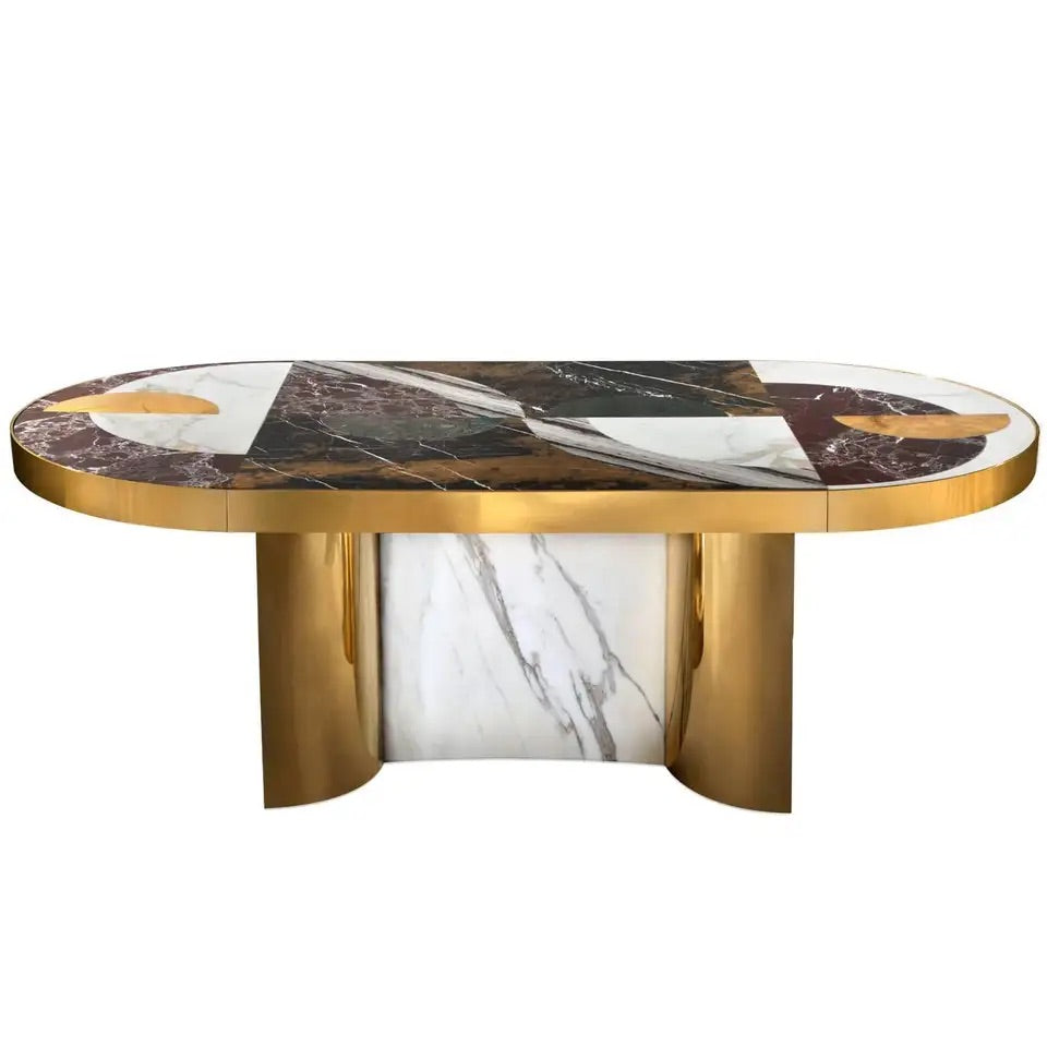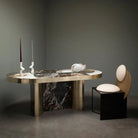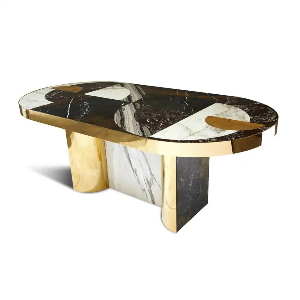 Using Pietra Dura and opus sectile techniques to create Lara Bohinc’s contemporary designs involves both state of the art CNC manufacturing and countless hours of painstaking hand-finishing. The half moon dining table requires over 100 hours’ work.