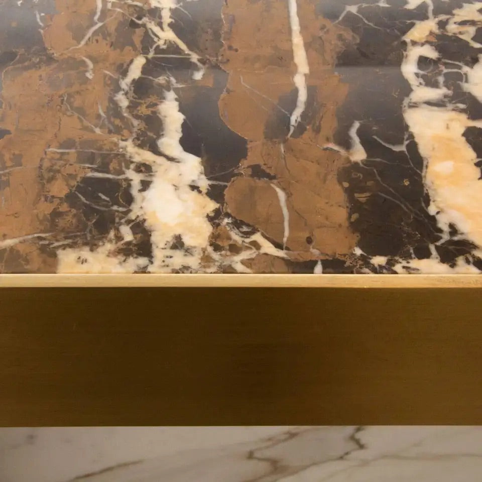 The juxtapositioning of charismatic marbles including Persian gold, Verde Guatemala, red wine and black and gold picks up another of Bohinc’s central inspirations for this collection: The historic buildings of Venice, where complex marble inlay has been a decorative art for centuries. Ancient stone marquetry work such as Pietra Dura and opus sectile is closely related to the jeweler’s art of marrying contrasting stones into a perfect whole, underlining Lara’s own design vocabulary.