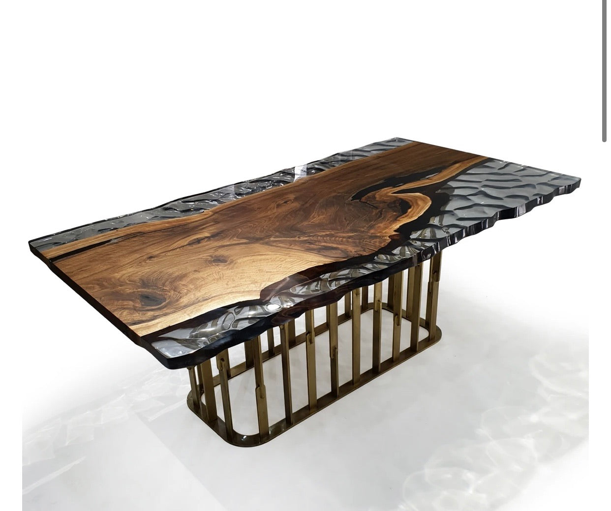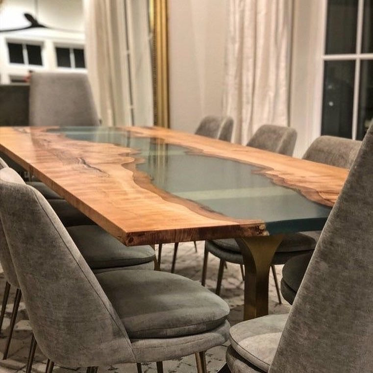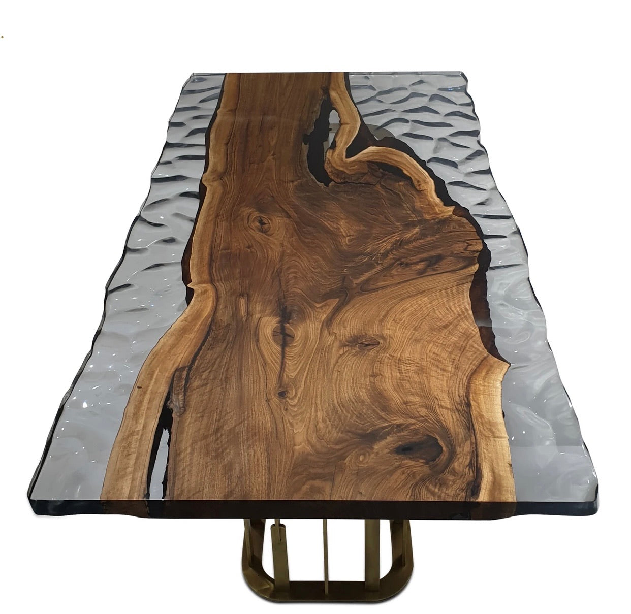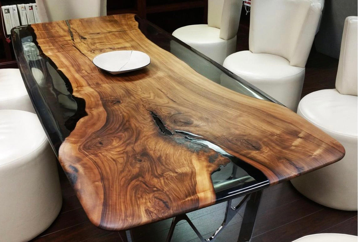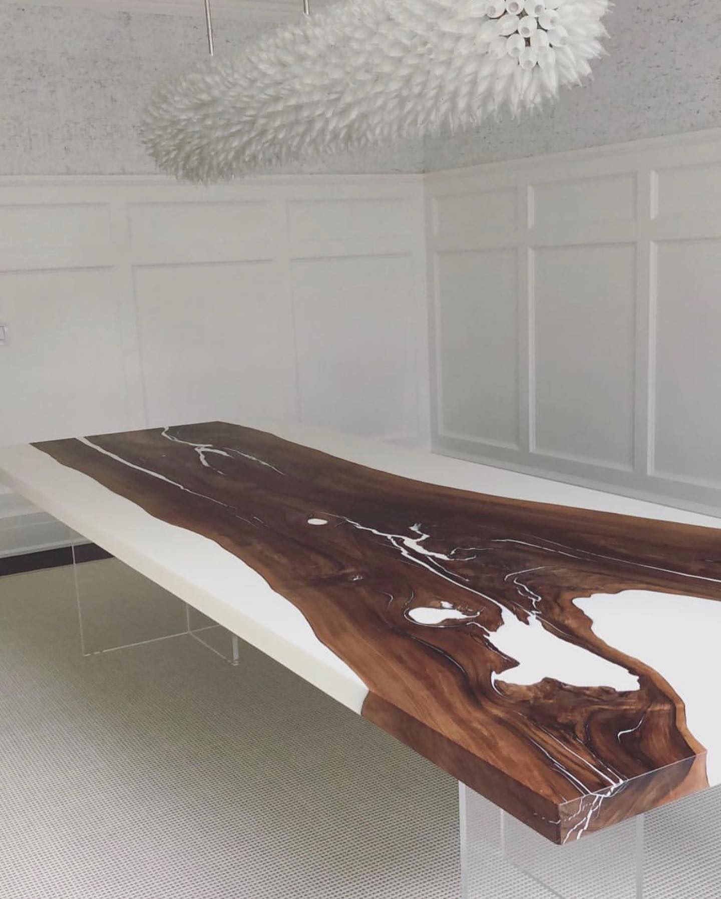 Ivory Epoxy Resin Live Edge Plexiglass Dining Table