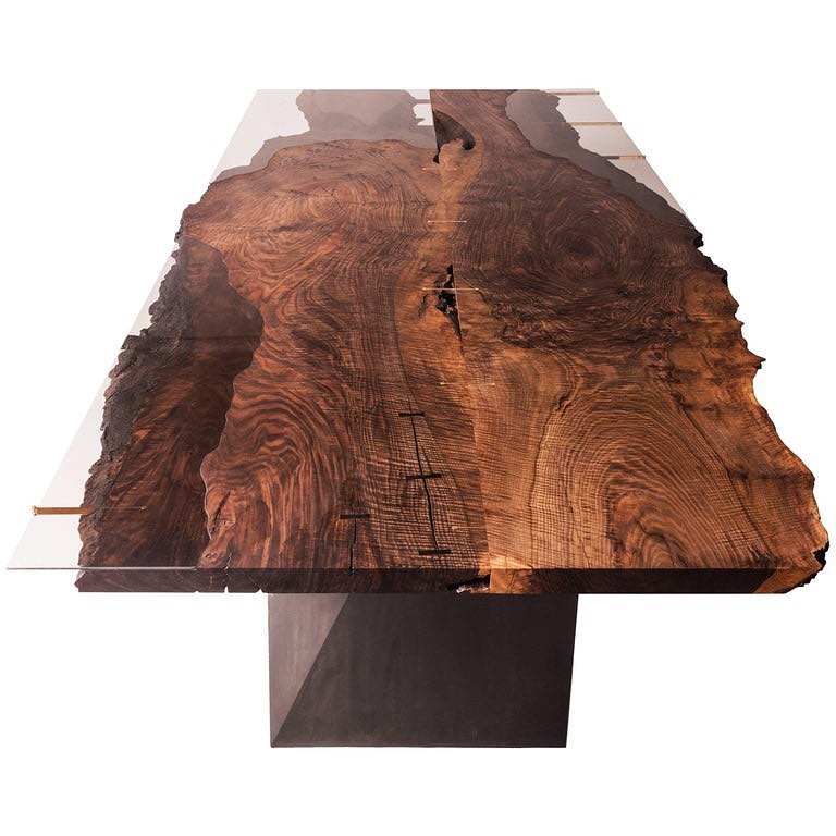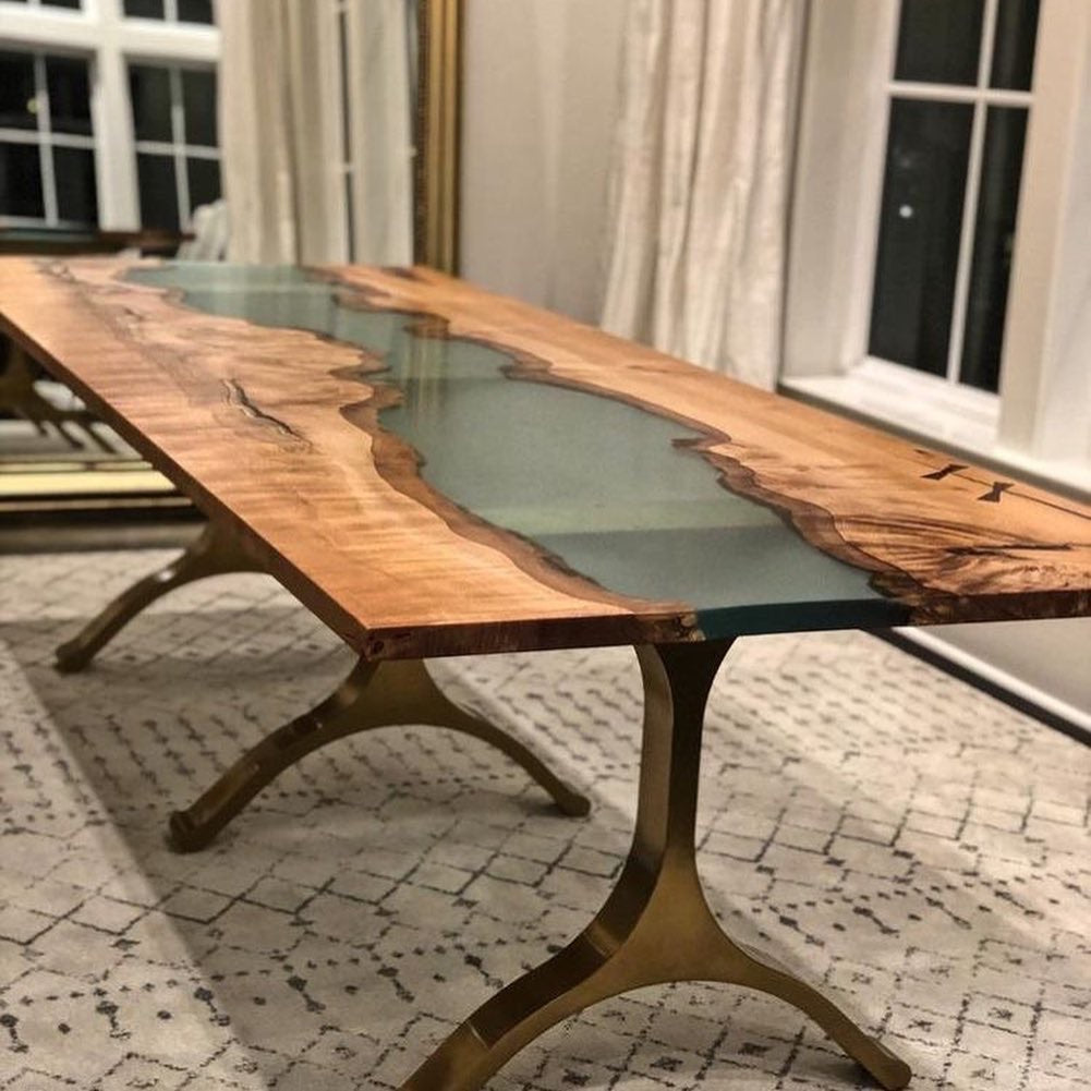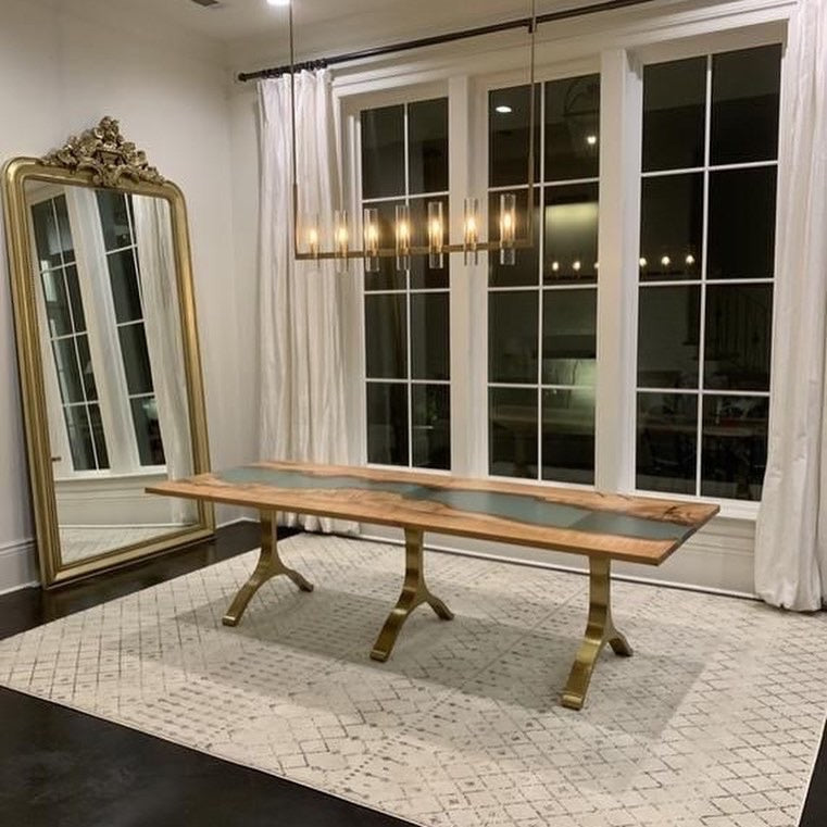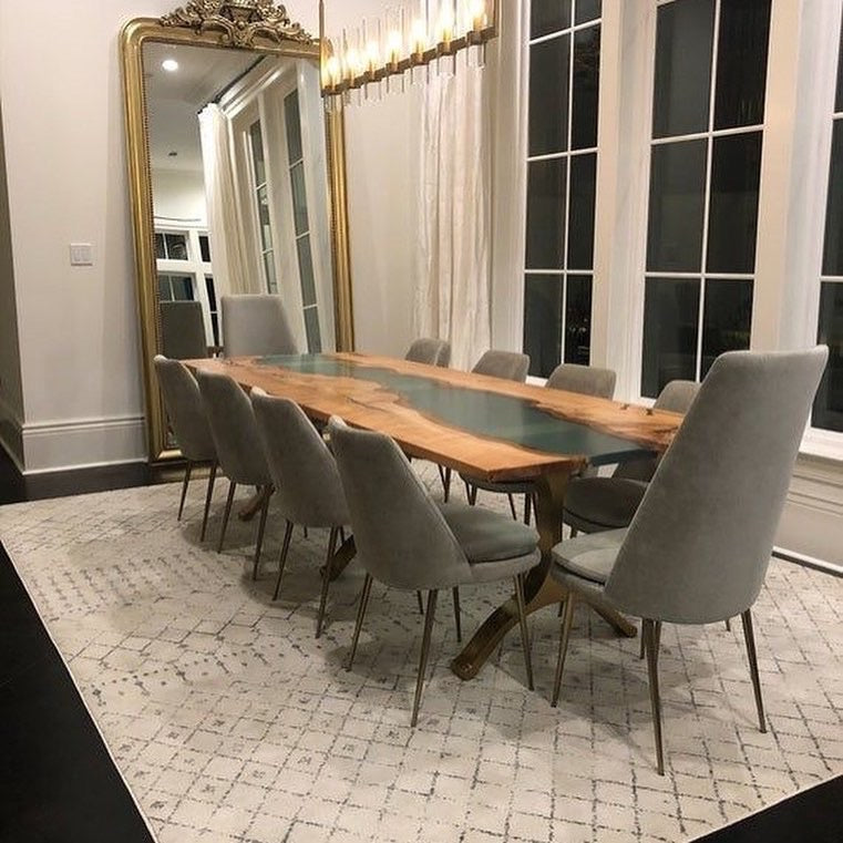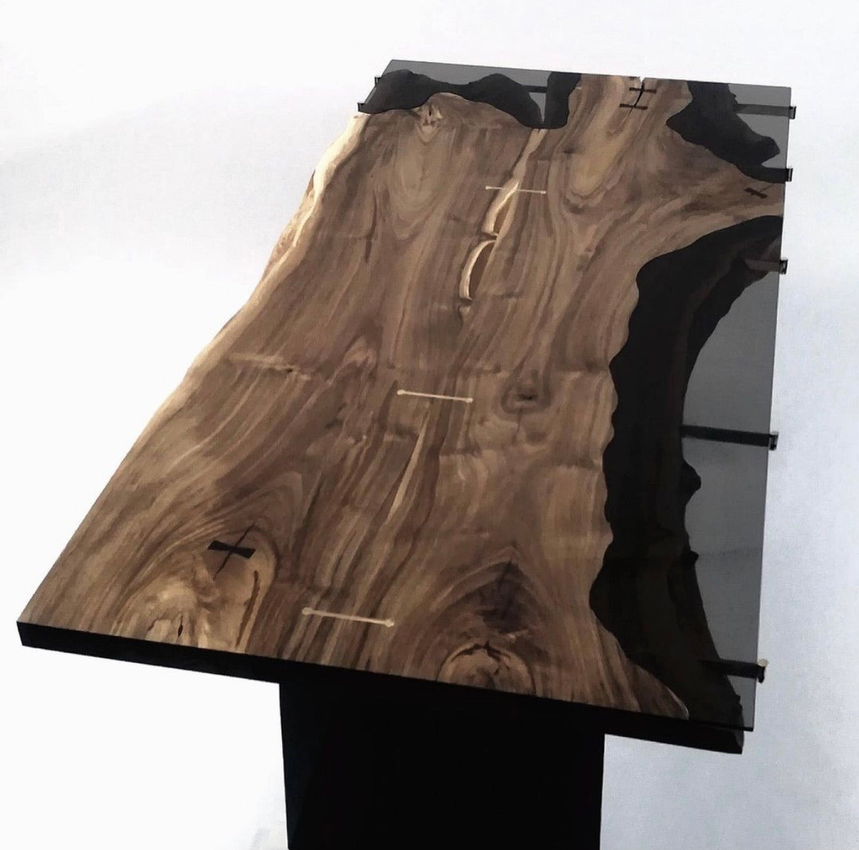 Ivory Epoxy Resin Live Edge Plexiglass Dining Table