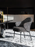 A saddle-hide or leather element designs a wing that embraces the armchair, sustaining the frame like a sculptural bustier, characterised inside by the inviting softness of the seat and backrest. Behind the apparent simplicity of the design lies an advanced technological process used to make both the padding with different textures of foam and the saddle hide or leather bustier
