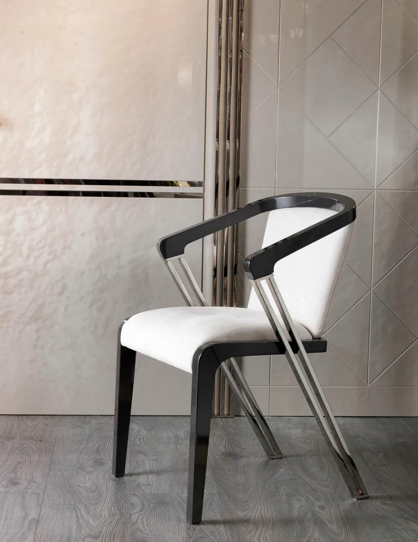 Infinity by Bizzotto Italia is an elegant upholstered chair with armrests, designed to bring refined comfort to sophisticated dining spaces. Its harmonious blend of curved forms, luxurious materials, and meticulous detailing creates a striking yet balanced presence. The chair combines visual lightness with generous comfort, making it suitable for both formal and everyday use. With its timeless appeal, Infinity embodies discreet luxury and contemporary elegance.