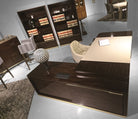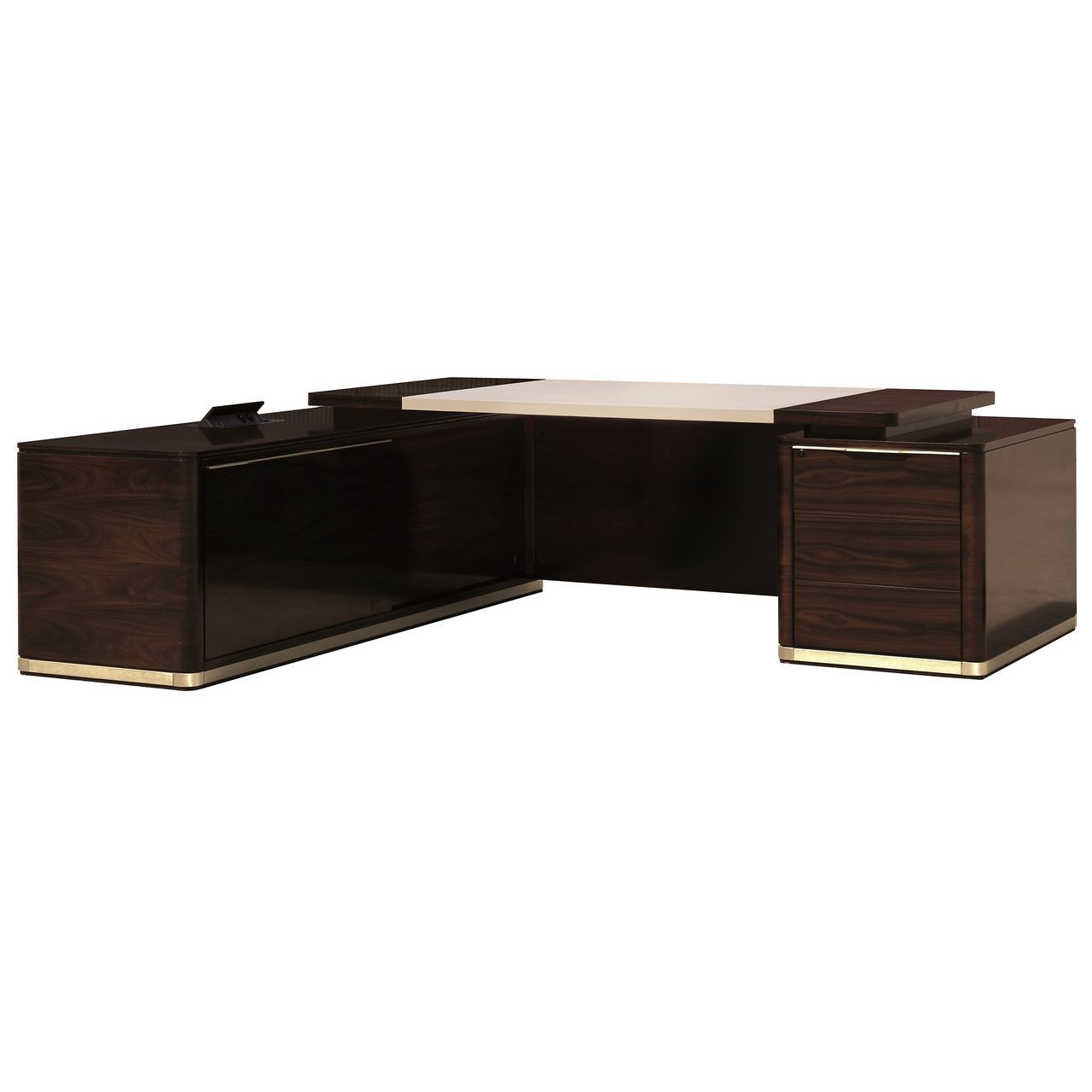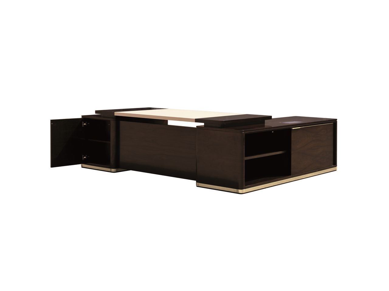 Featuring a leather-covered top and built-in storage with power and USB outlets, the Santa Barbara desk combines functionality and sophistication. It comes with a three-drawer chest with locks, a hidden door with adjustable interior shelf, and a side credenza with sliding doors and wooden shelf. Classic yet modern, the Santa Barbara Executive Desk expresses Hurtado's passion for tradition combined with the latest design techniques, featuring luxury materials such as leather and a selection of fine woods. It is also available with an optional electrical and data kit.