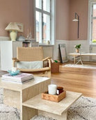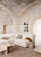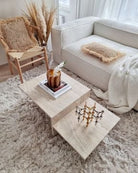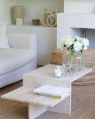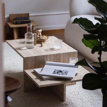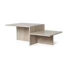 Originally inspired by Japanese minimalism, the Distinct Coffee Table explores the creation of complex structures based on a single element. The minimalist construction creates a contrast to the richness of the travertine's earthy textures. With the natural and diverse qualities of the sand-coloured limestone, it provides rawness and tangibility that highlight the architectural character of the furniture piece.