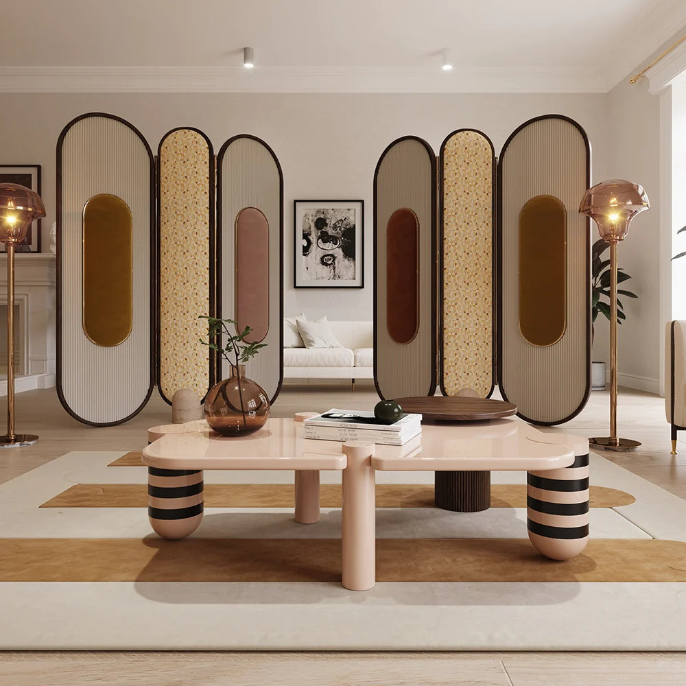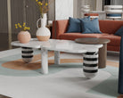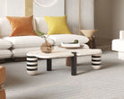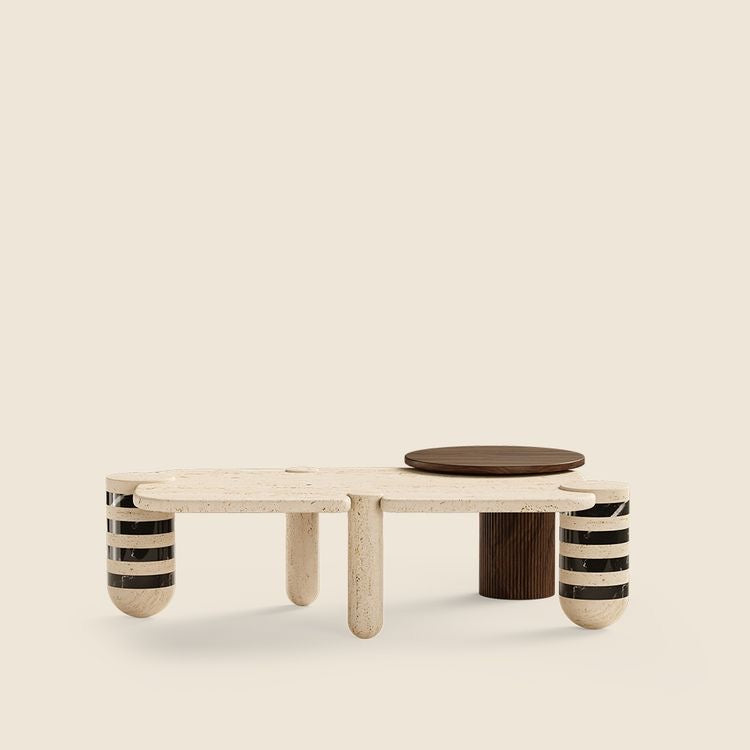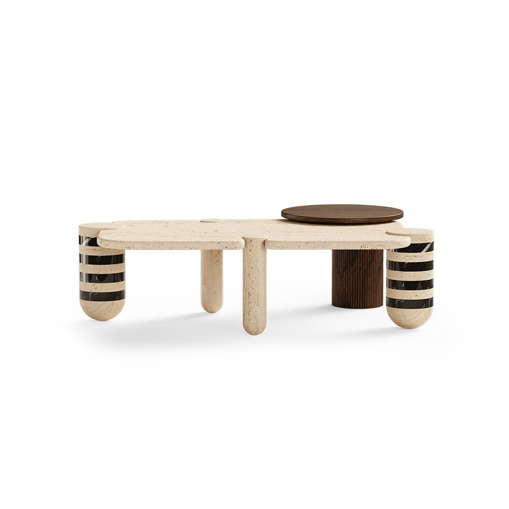 The Edith center table is a celebration of geometrical forms. Its bold look will be the center of attention of any living room with its contrasting lines and materials.