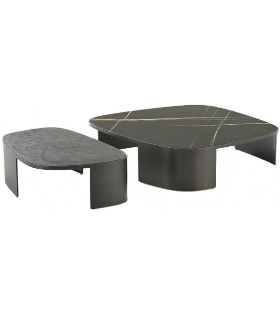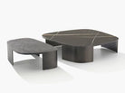 Koishi coffee tables are inspired by soft lines and organic shapes. The name itself – Koishi, which means “pebble” in Japanese – alludes to a naturalness that is also expressed in the choice of natural materials such as marble, stone and wood. The metal structure is sculptural but minimal; wood, glass and marble are the materials available for the top.