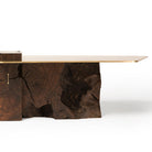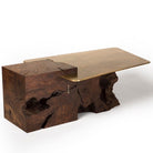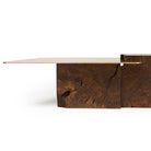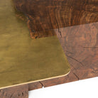 - SOLID CLARO WALNUT / SHIFTED HALVES / HAND PATINA'D BRASS / POLISHED BRASS CORSETS / NATURAL OIL + WAX FINISH