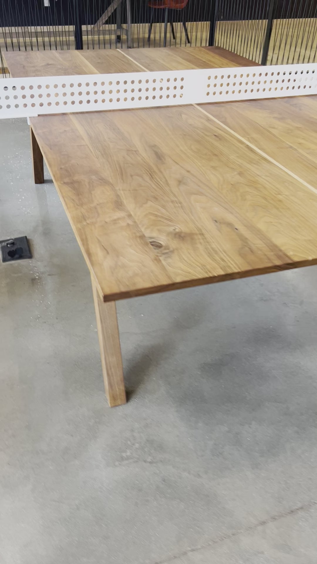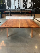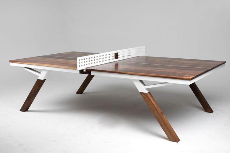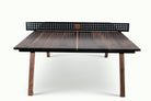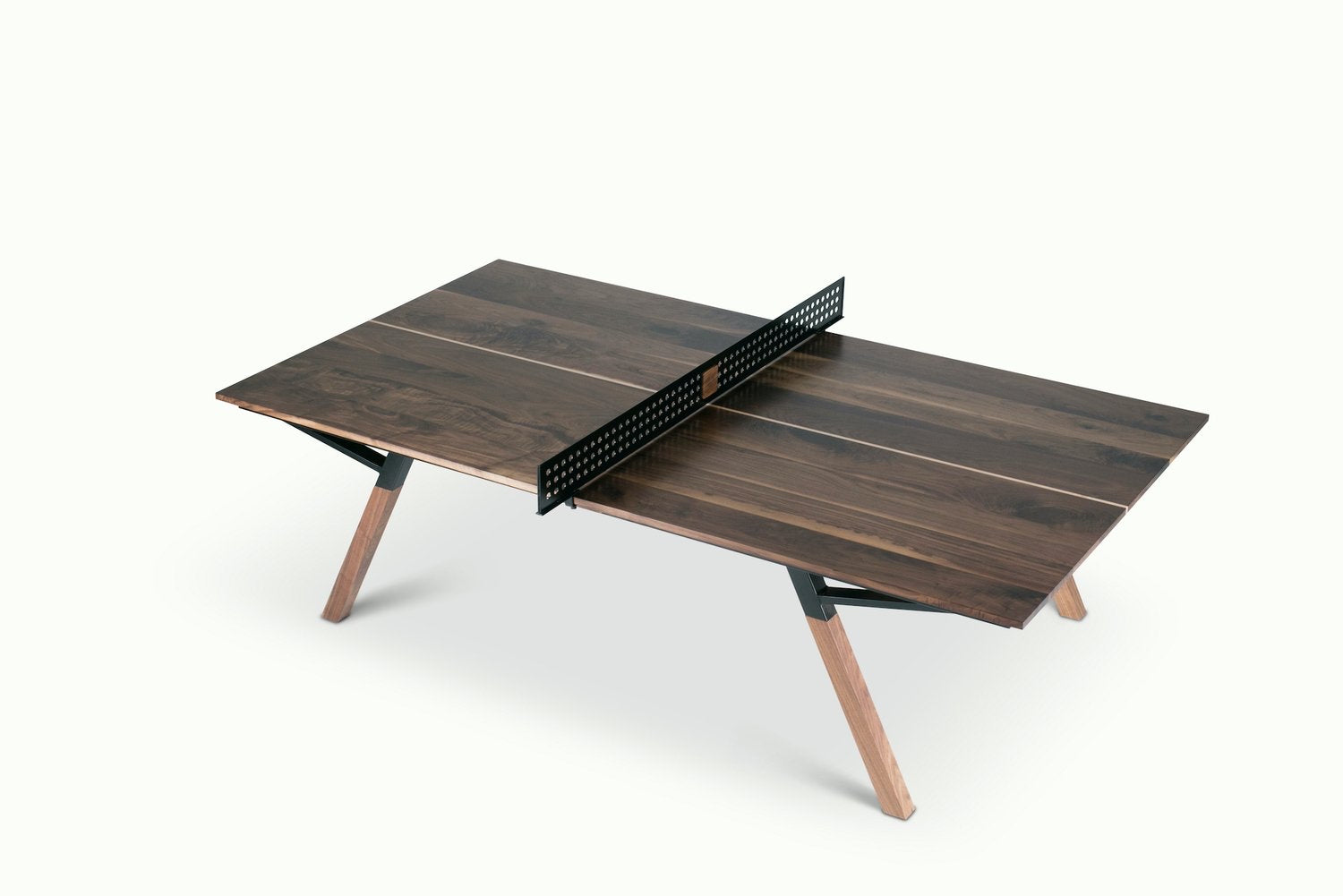 A tribute to one of the greatest games ever created. Devised by fun-loving Victorians in the 1880s who picked up round wine corks and batted them around a dinner table. Their improvisation called whiff-waff evolved into the highly enjoyable game of table tennis or ping pong. The solid black walnut top on a steel base establishes this innovative design by Woolsey as timeless as the game of table tennis itself.