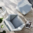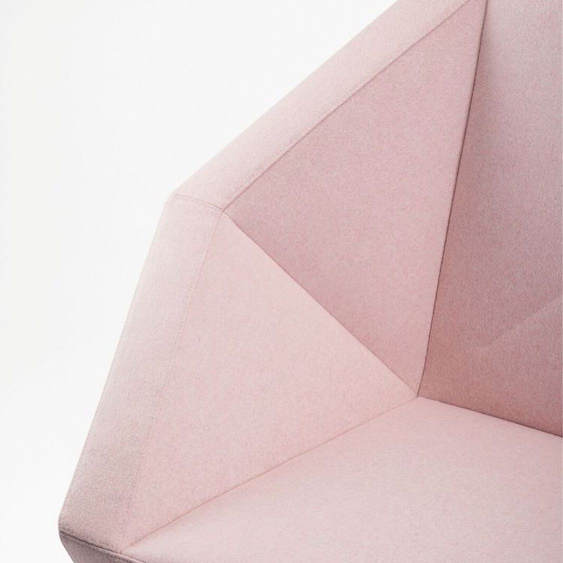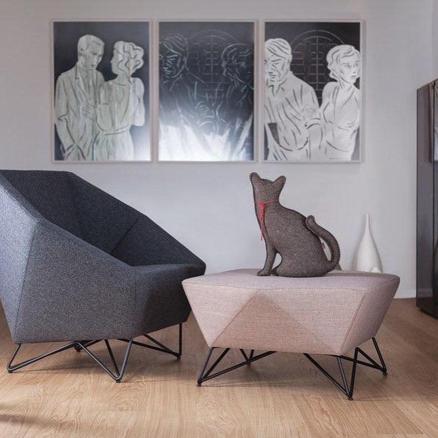 Fragmented, crystal-like forms systematically describing a compact volume, almost like an algorithm, characterize the design. This solution is not only formal - the characteristic cube armrests follow the ergonomic line of relaxed arms. A soft shell of the backrest and armrest is covered with a continuous cover whose edges are marked only with a very subtle line of seams. A light metal sub-construction reproduces the characteristic triangular motif contributing to the compactness of the composition. The cube is a self-confident yet very disciplined formal step forward whose strong identity does not interfere with fitting in various ambiences.
