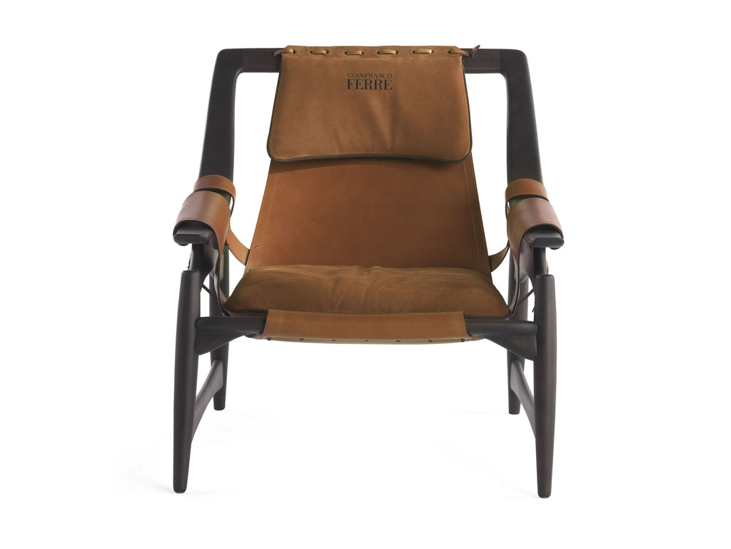 Kalamaja Armchair has the retro charm and metropolitan spirit that make it a unique seat with a distinctly masculine connotation. The solid beech wood structure dominates the composition with slight curves to soften the edges. Very light is the suspended leather seat, supported by the armrests with straps fastened by decorative buckles. A matching headrest with a suede finish enriches the design to accentuate the cosy and comfortable character of the Kalamaja Armchair.