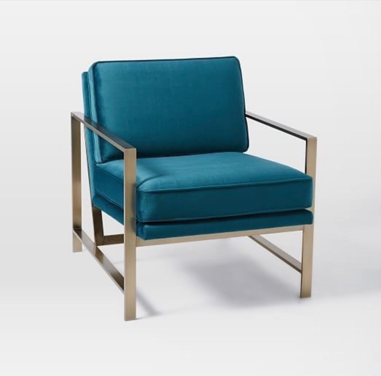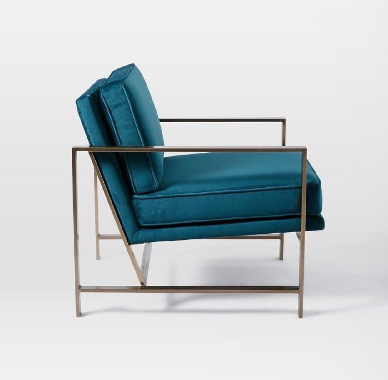 The modern structure of our Metal Frame Chair is the perfect contrast to its plush, tailored cushions, for a look that manages to read both industrial and glam. It's the armchair we all have our eyes on.