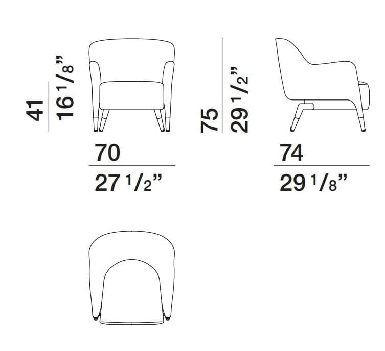 PONTI armchair with armrest with removable fabric cover, also available with leather cover.