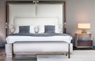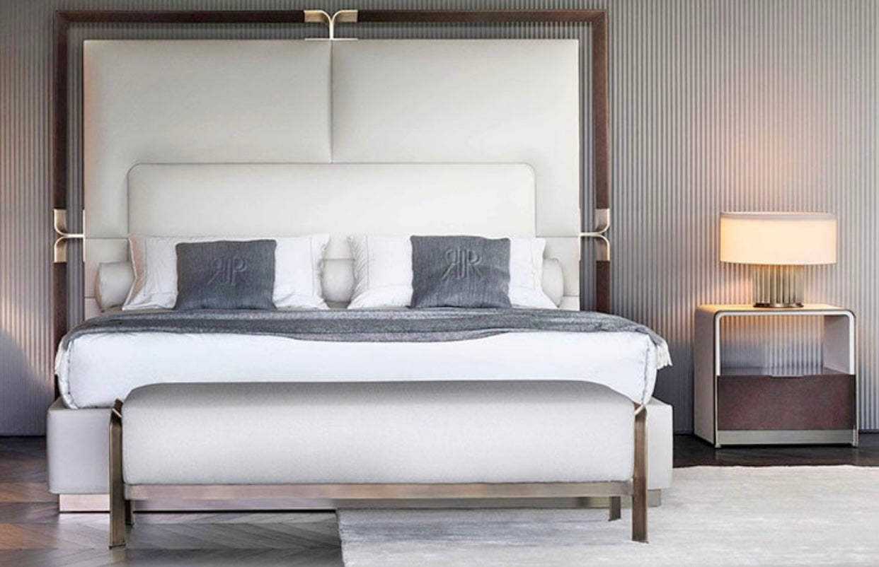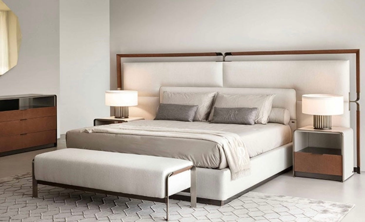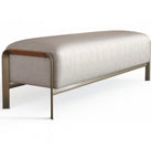 Upholstered bench with bronze structure with inlaid leather detail. Handmade in Italy.