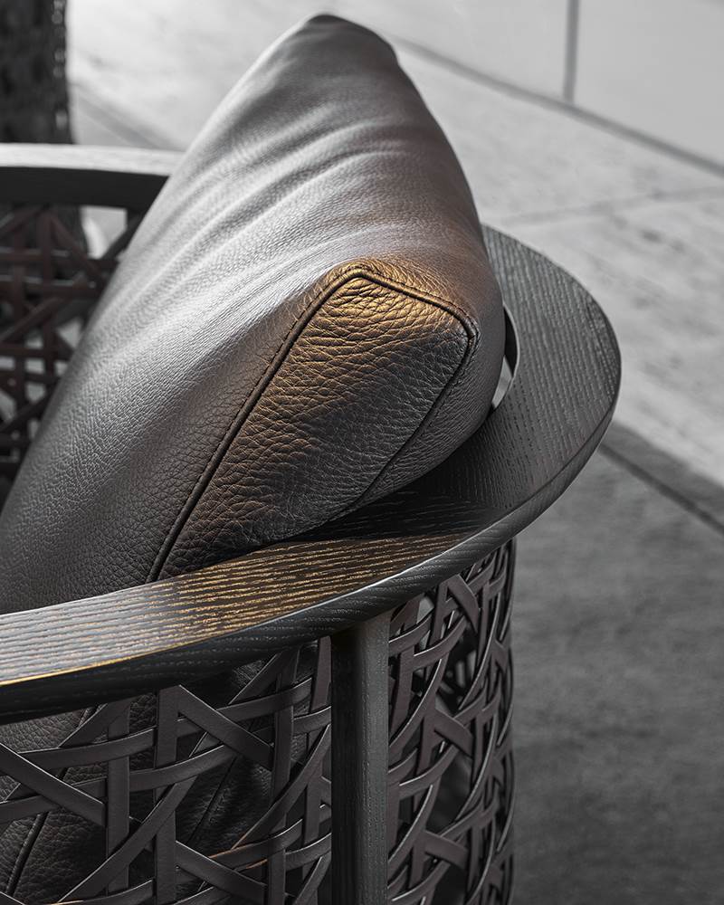 This braided leather armchair offers a distinctive visual identity, making it a statement piece in modern luxury seating environments. Its balanced proportions and sculptural presence make it an ideal high-end living room chair, equally suited for lounges, private residences, and luxury hospitality spaces.