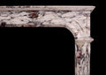 An impressive Louis XIV style fireplace in Breche Violette marble. The stop fluted and panelled jambs surmounted by arched, panelled frieze. Moulded shelf above. A substantially deep fireplace in an attractive marble.
