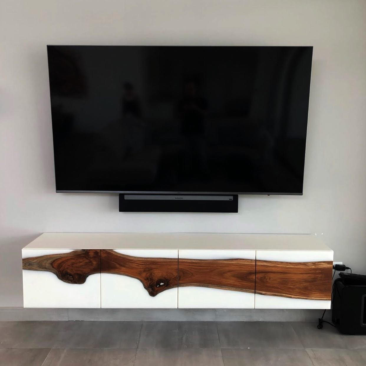 Floating live edge Epoxy Resin media console “wall hang unit”