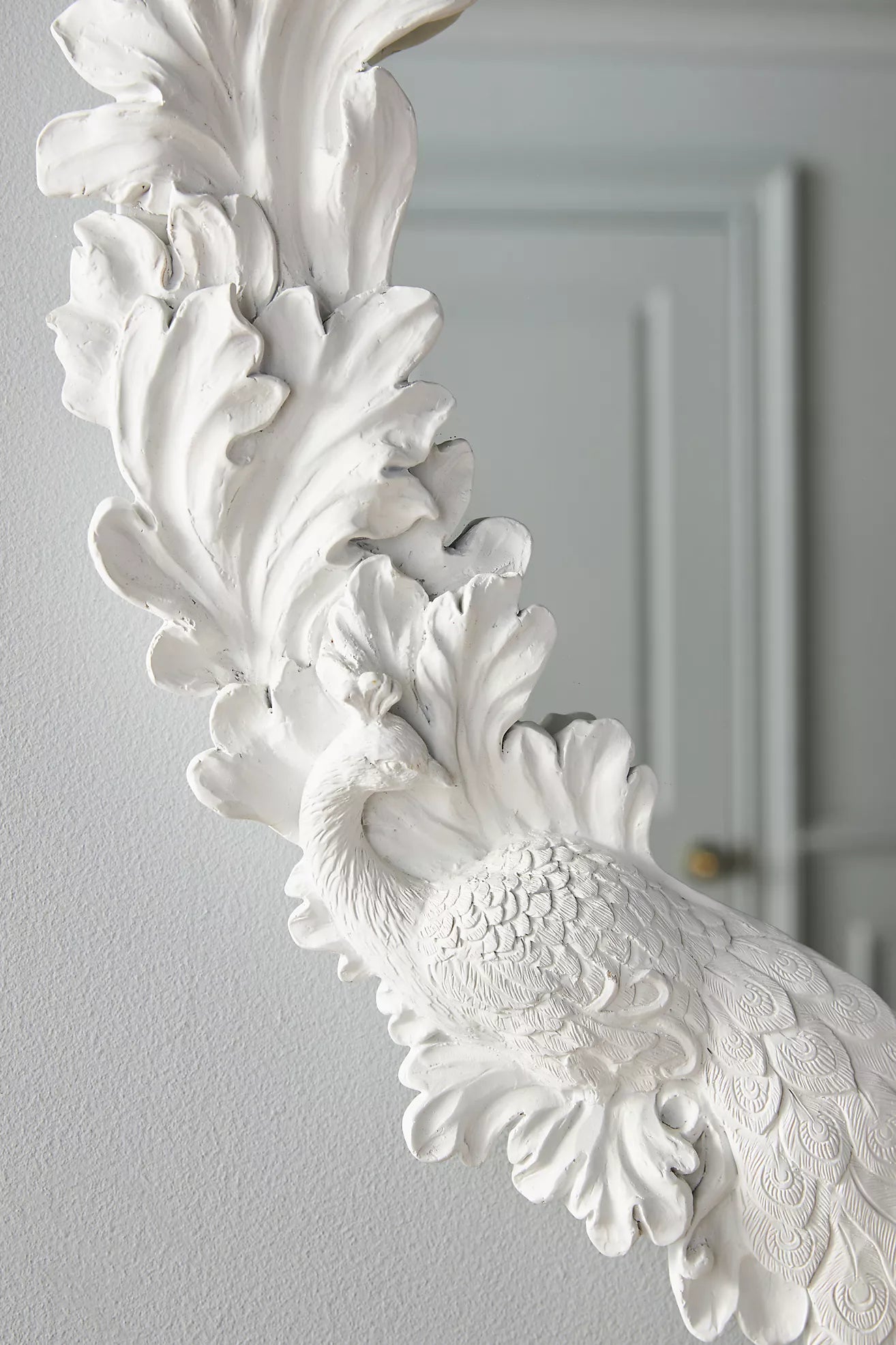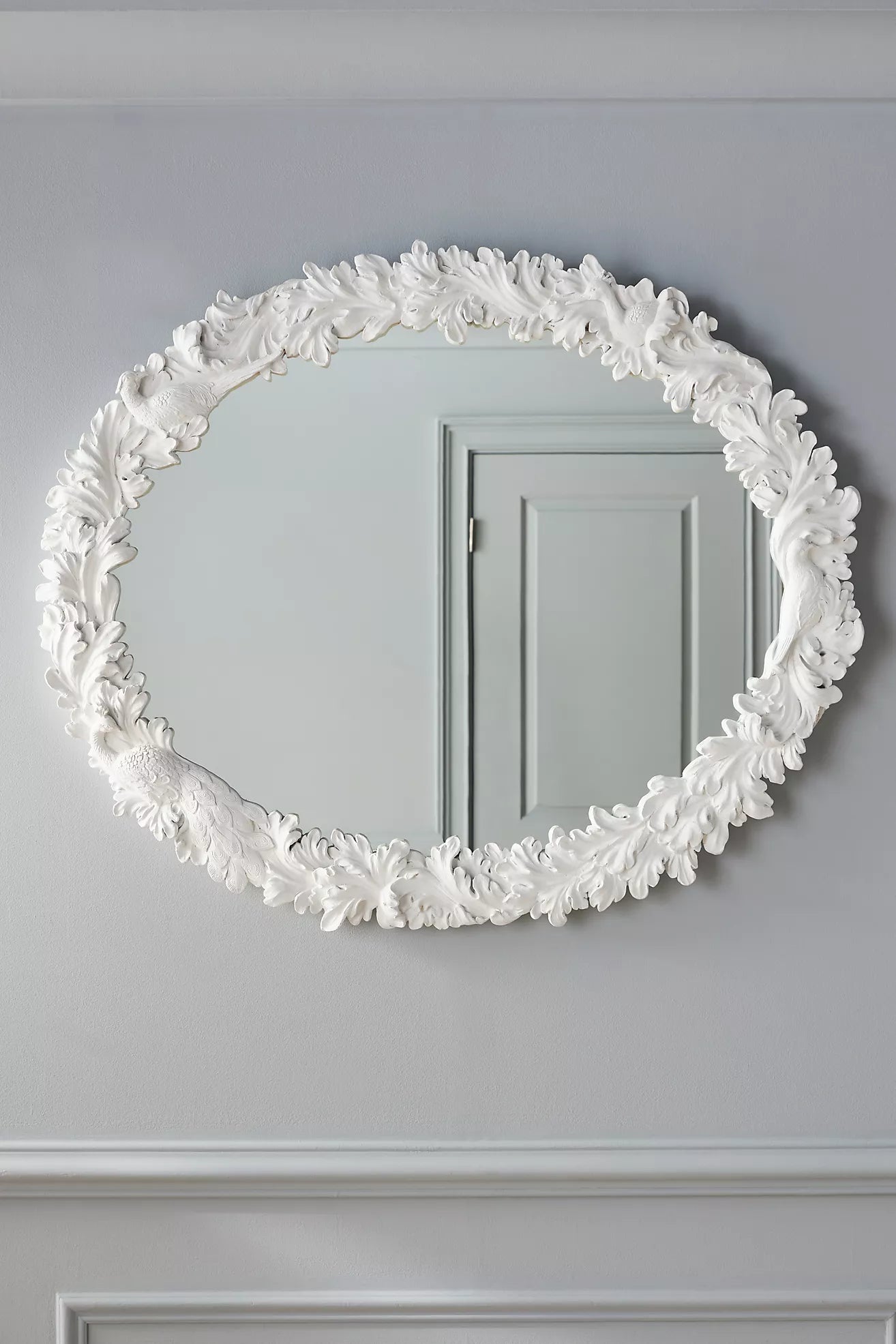 Flora and fauna accents create a textured trim around this mirror, making it the perfect statement piece for any room.