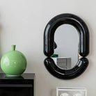 The mirror's playful silhouette serves as more than just a reflective surface; it's a visual delight that enhances the character of any room. Whether hung in an entryway, living room, or bedroom, the Hennu Mirror becomes a captivating focal point, elevating your space with its distinctive charm.
