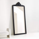 Ornamented with just the right amount of flourish, our Levon floor mirror walks the line between modern and traditional. Finished in matte black, the handcarved mango wood mirror features a gently rounded frame and intricate scrollwork at the top. Tilted against the wall in the bedroom, living room or entryway, the freestanding mirror complements any style with its understated, vintage vibe.